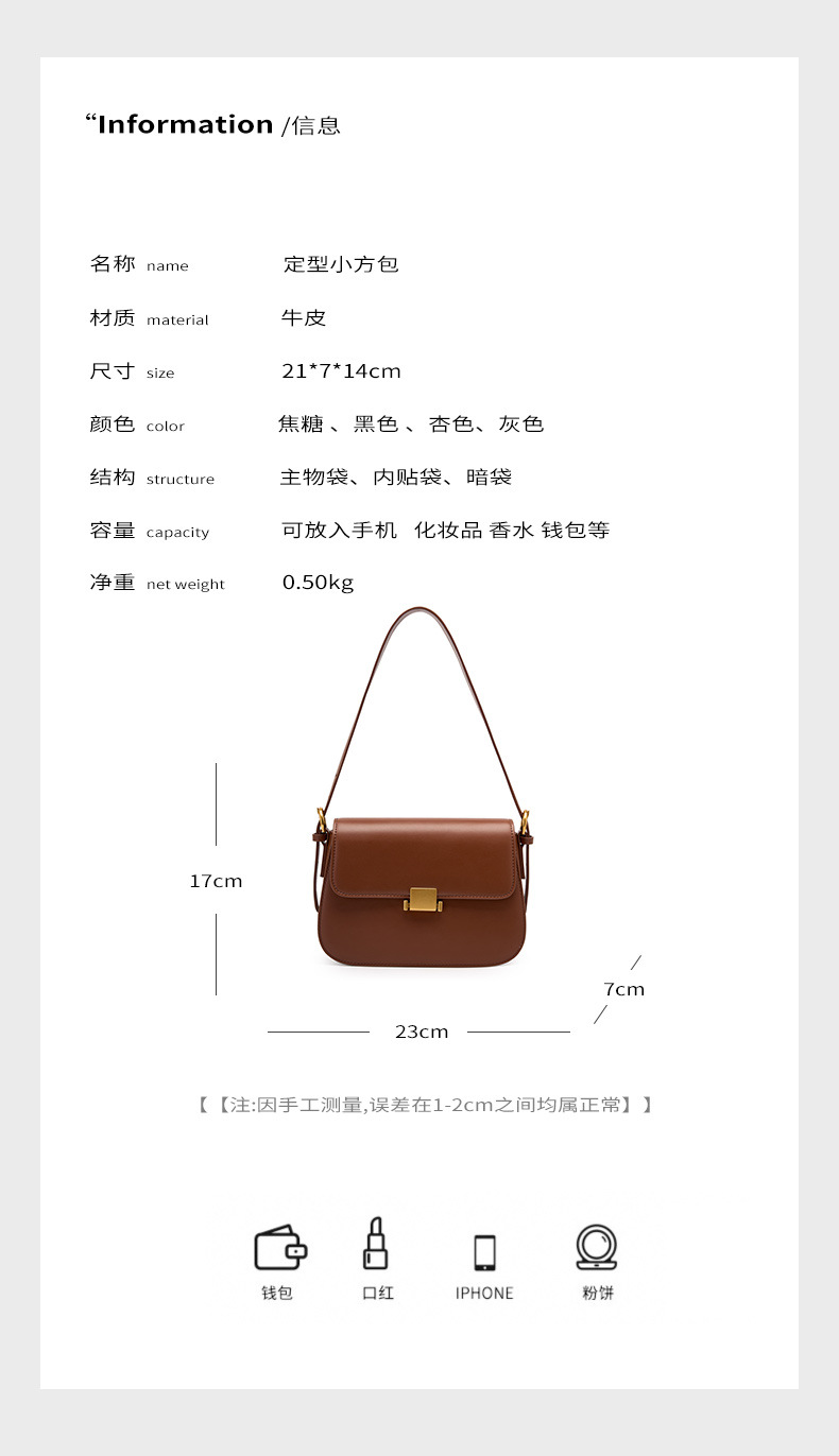軽奢風斜め掛けバッグ レディース 新作 斜め掛けバッグ 女性用豆腐型ショルダーバッグ 脇の下に挟む小さめスクエアバッグ 本革