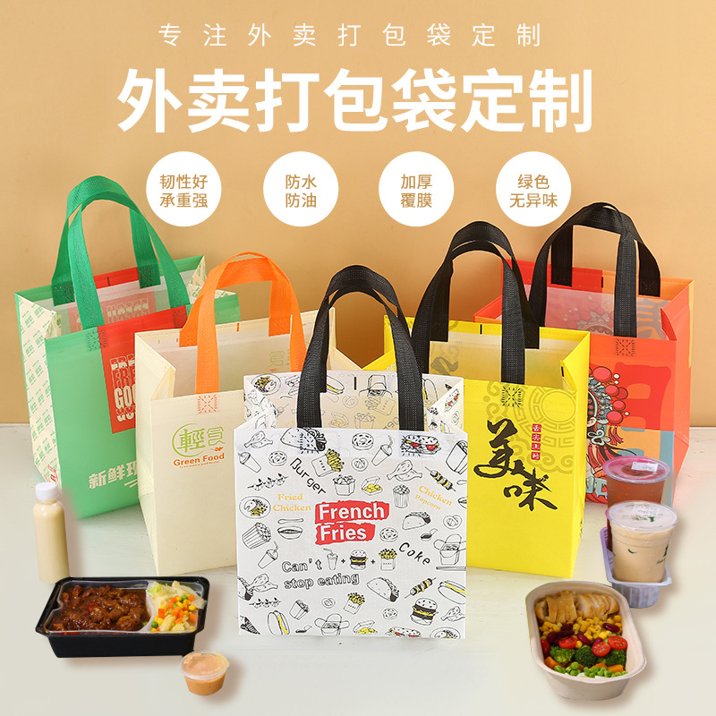 不織布のテイクアウトバッグカスタム飲食業務用鍋焼き防水保温手提げ袋カスタムロゴ