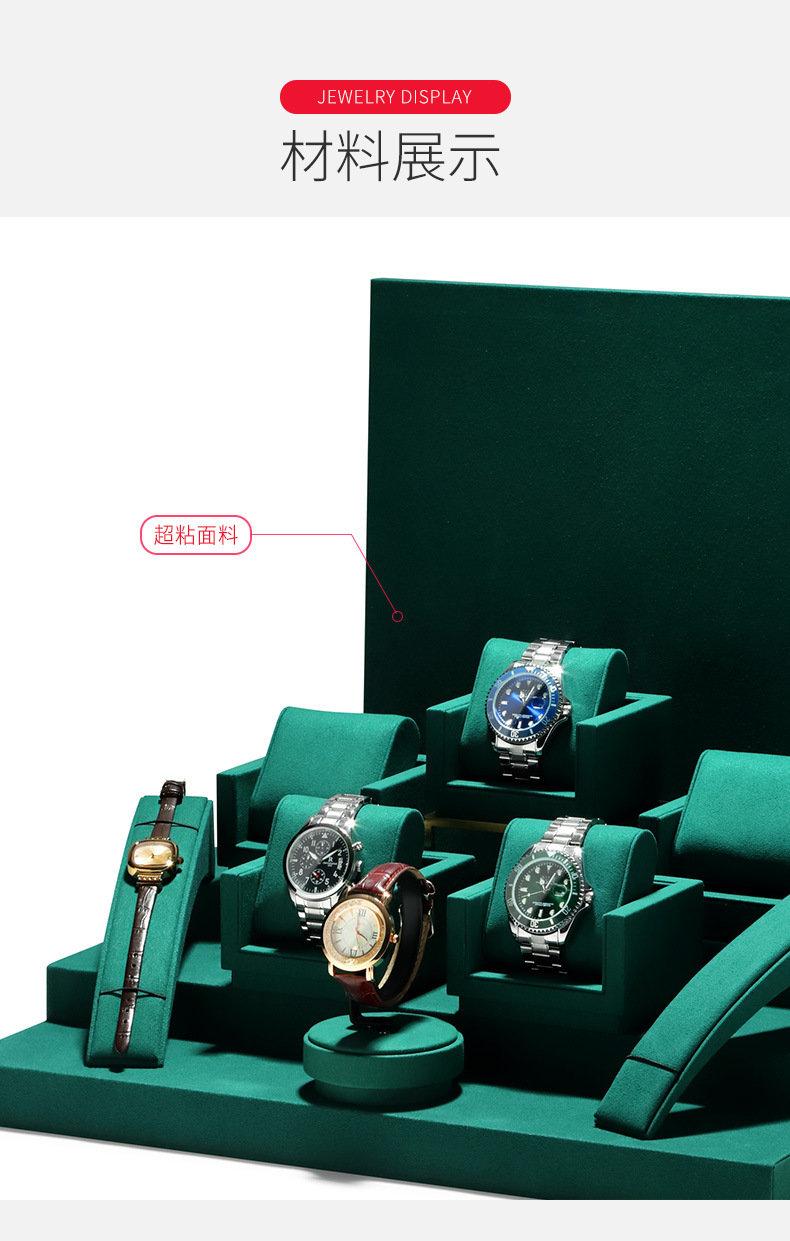工場直供腕時計展示道具生放送ショーウインドー腕時計陳列道具金属墨緑階段形展示棚