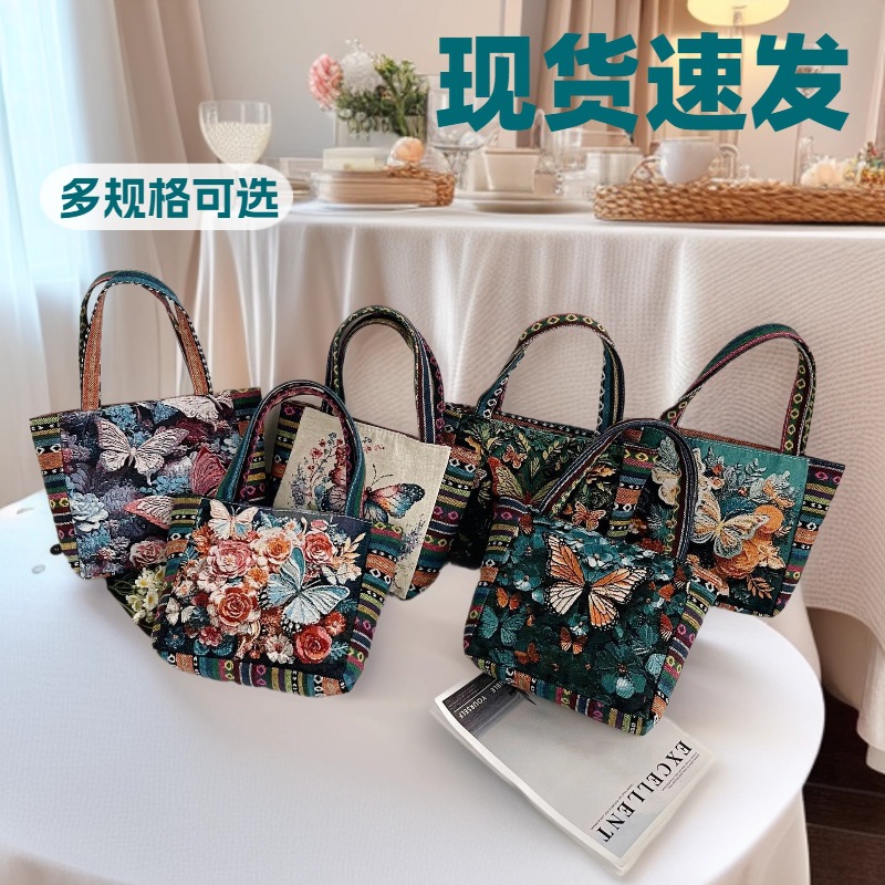 民族風ハンドバッグ砂発表刺繍バッグ清新カジュアル両面金糸刺繍ミニ布バッグ漢服バッグ