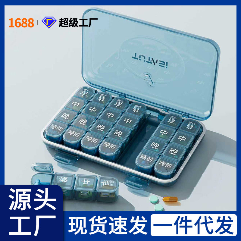大字老年人药盒一周七天早中晚大容量便携分药器28格药品分装药盒