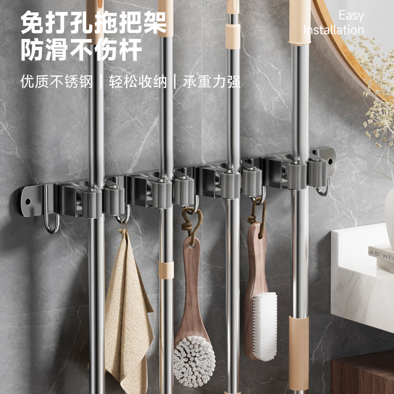 穴なしモップ壁掛けクリップ銃灰フックステンレスほうき固定ハンガートイレモップ収納家庭用