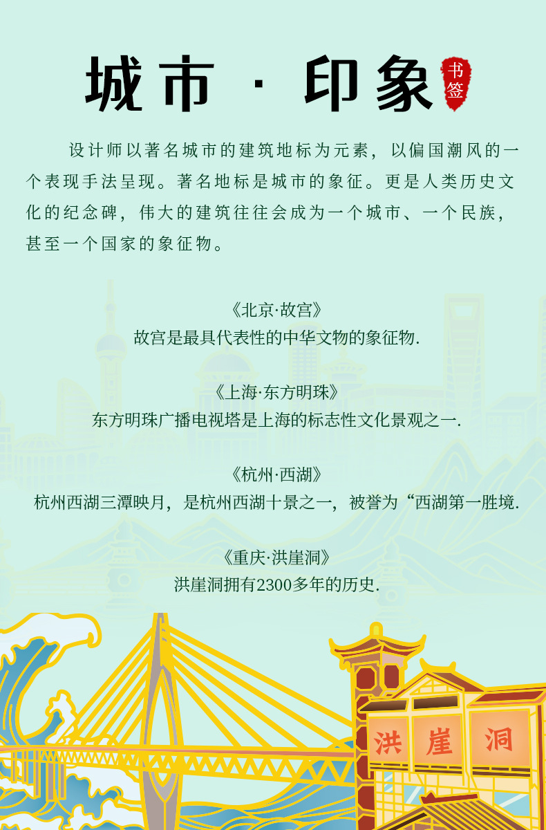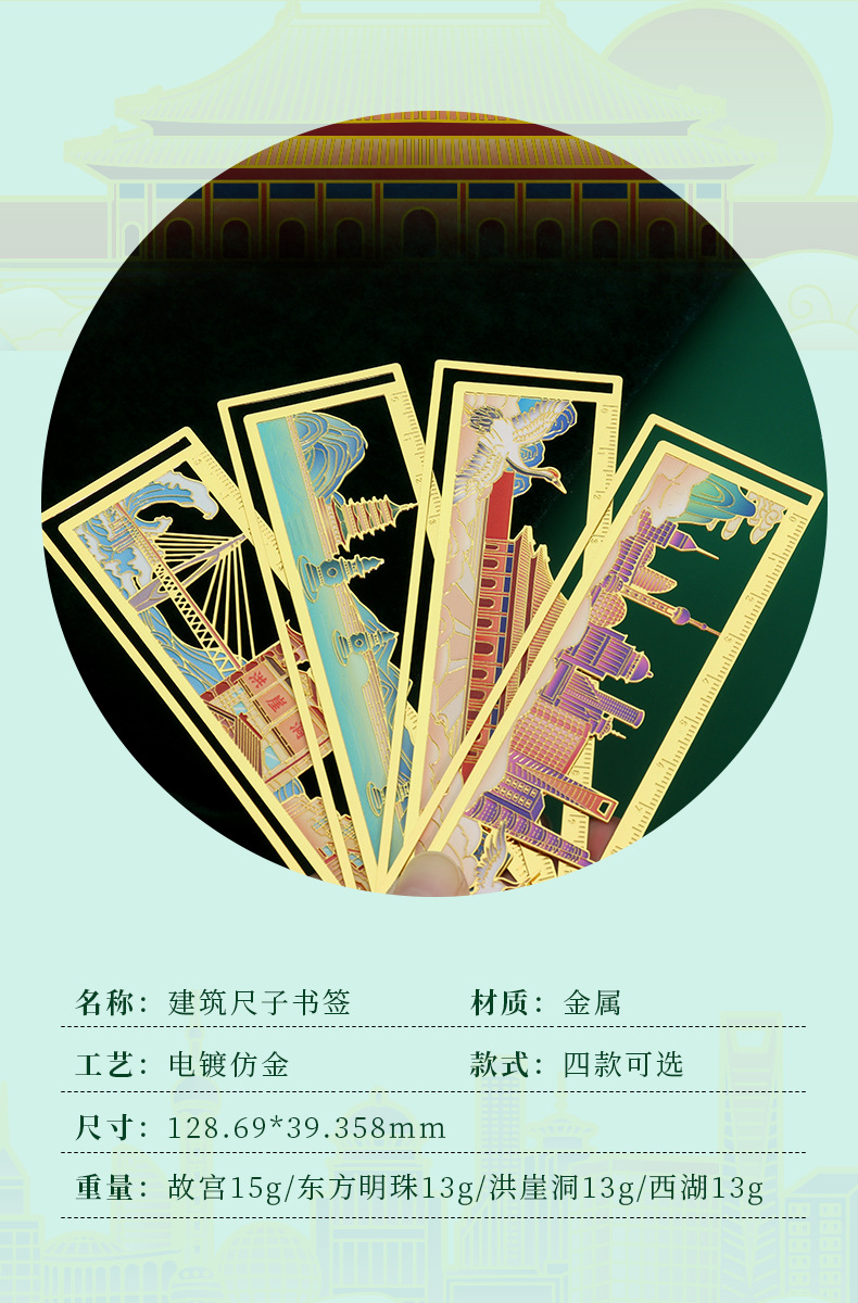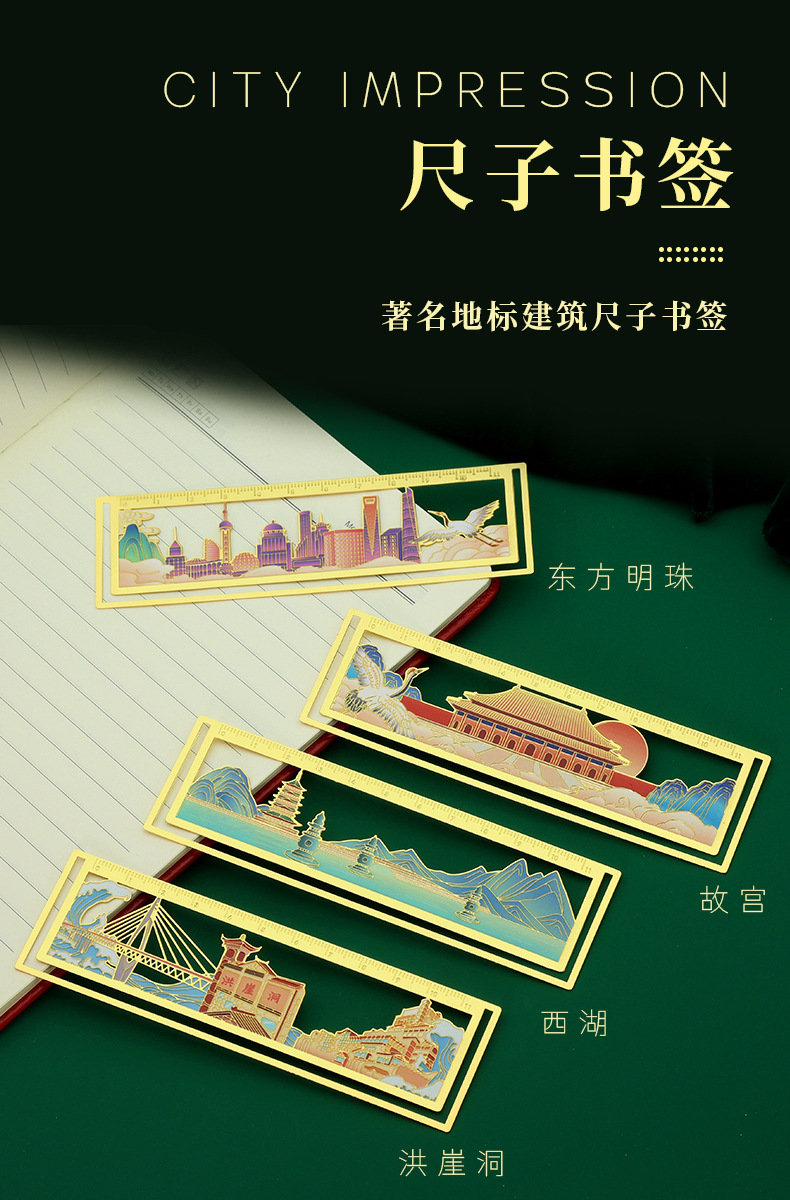 カラー 杭州・西湖金属製ブックマーク定規,重慶・洪崖洞 メタルブックマーク定規,上海・東方明珠 メタルブックマーク定規,北京・紫禁城 メタルブックマーク定規