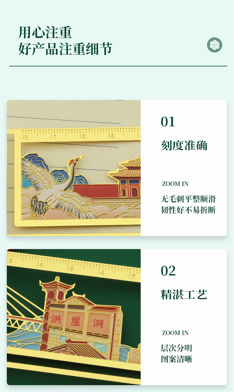 中国風メタルブックマーク、カスタム高級真鍮ブックマーク、文化創造定規、記念品、プチギフト、カスタムブックマーク