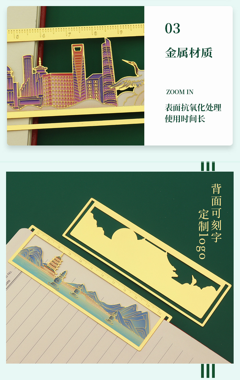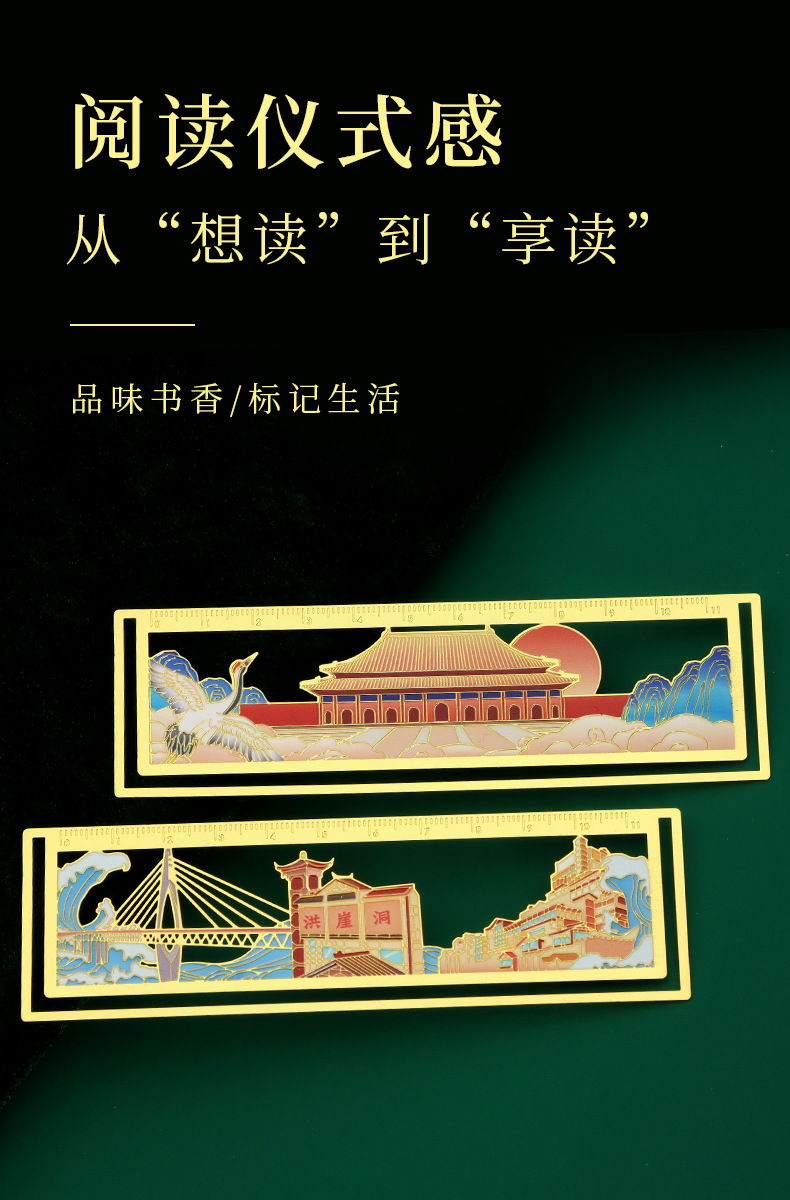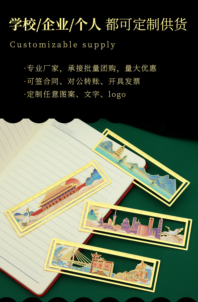 金属书签城市镂空精美文创黄铜古风车票旅游原创景点纪念腐蚀烤漆