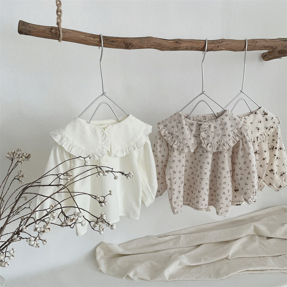 韓国の春と秋の女の子の赤ちゃんの柔らかい花の底のシャツins長袖の子供の襟のゆったりしているかわいい子供のシャツ