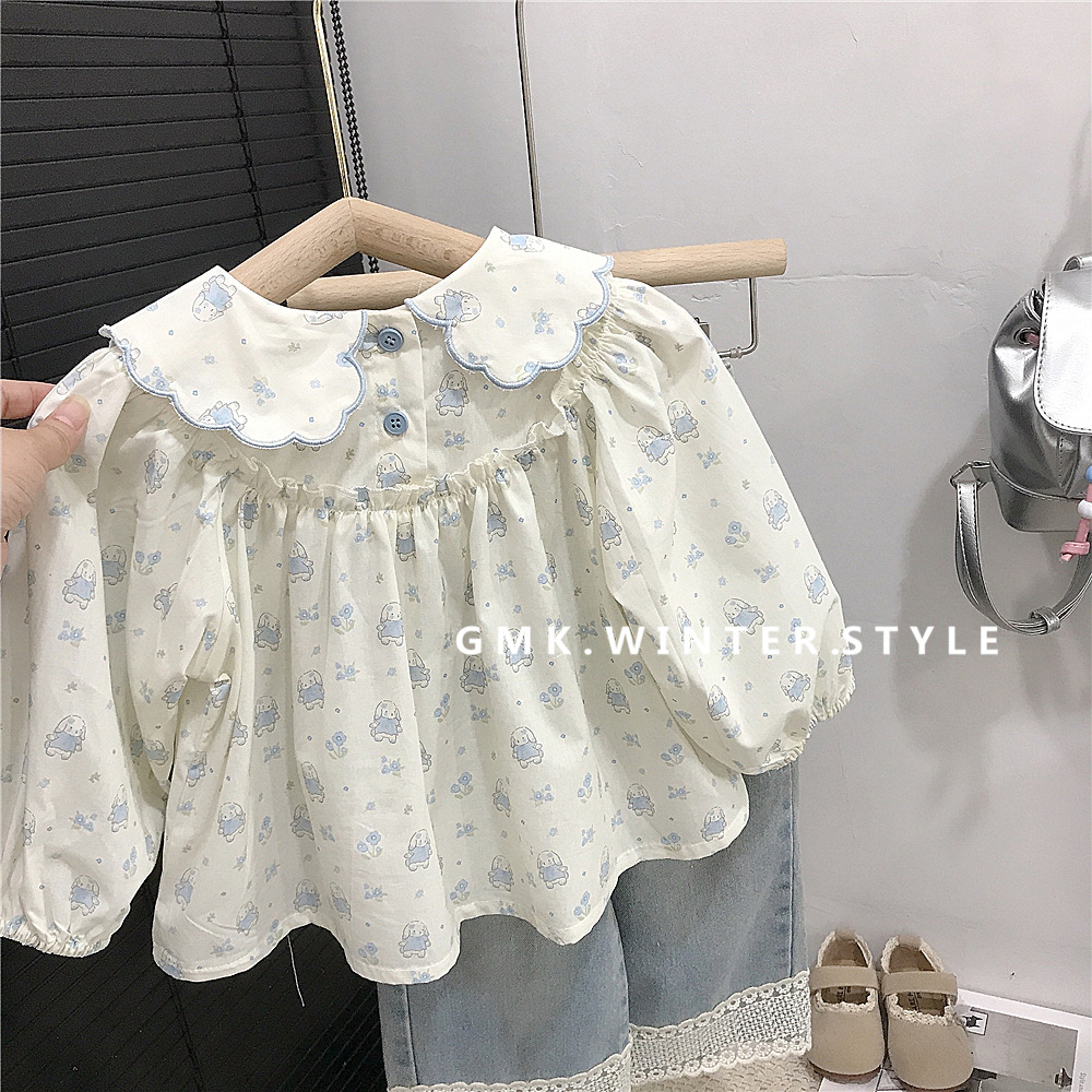 女童衬衫春秋款新款洋气宝宝长袖上衣儿童娃娃衫秋装卡通衬衣外贸