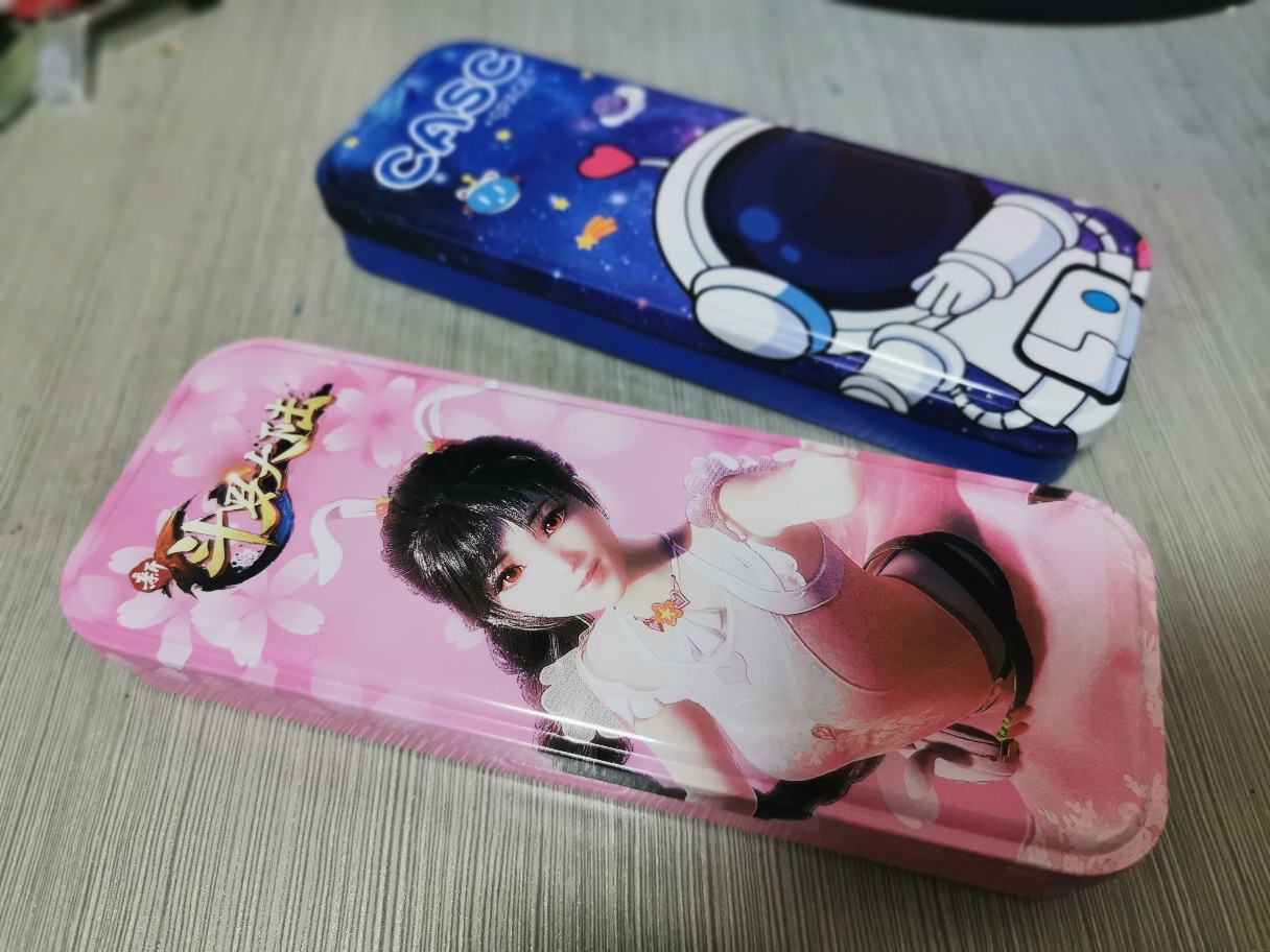 二層の文房具の箱の漫画のアイデアの鉄の箱のブリキの金属の箱の宇宙人の学生の鉛筆の箱