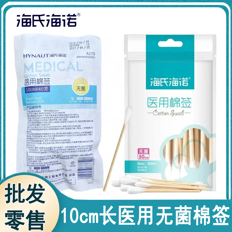 Haishi Hainuo 医療用綿棒 滅菌済み 50 個 大型ヘッド 家庭用脱脂綿棒 シングルヘッド 大型ヘッド ロング綿棒
