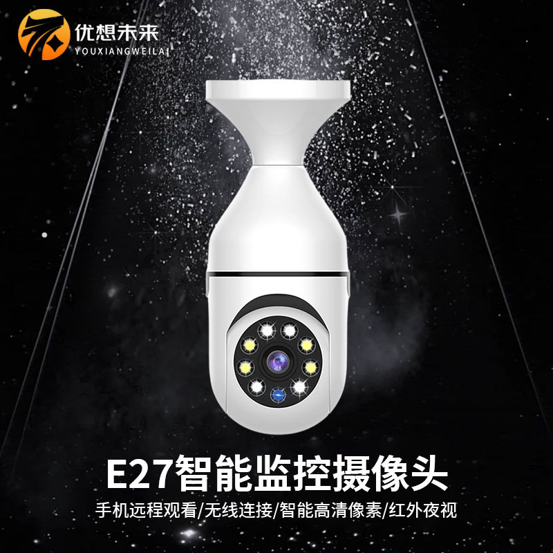 跨境爆款360度旋转家用安防摄像头E27双光夜对讲功能手机远程监控