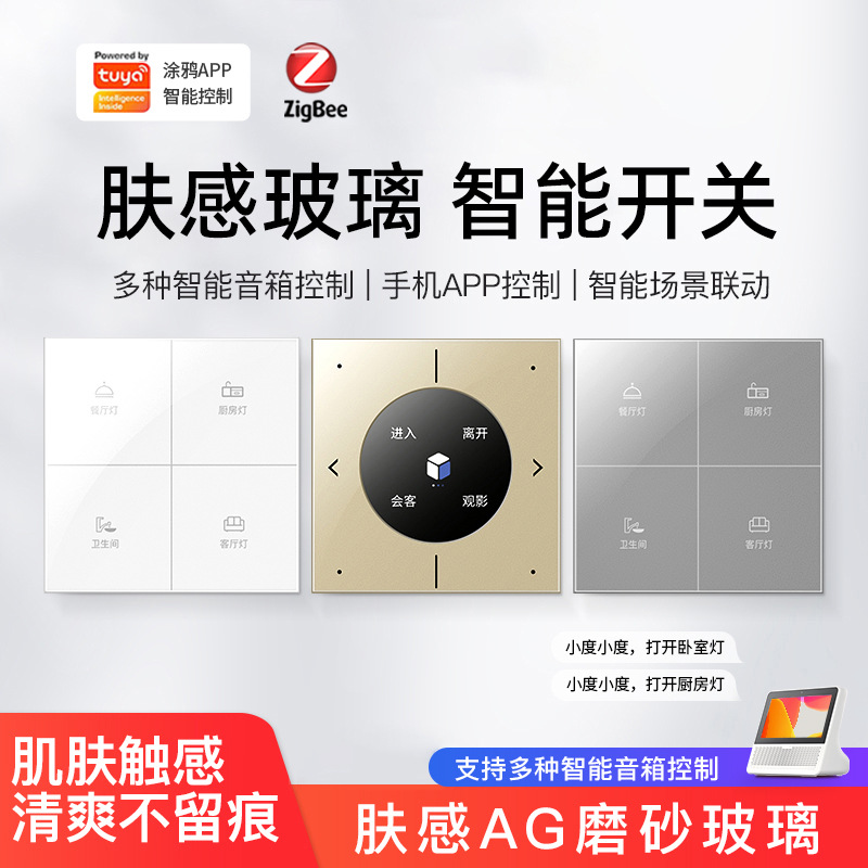 涂鸦APP智能控制智能开关插座面 家居语音全屋肤感玻璃零火Zigbee