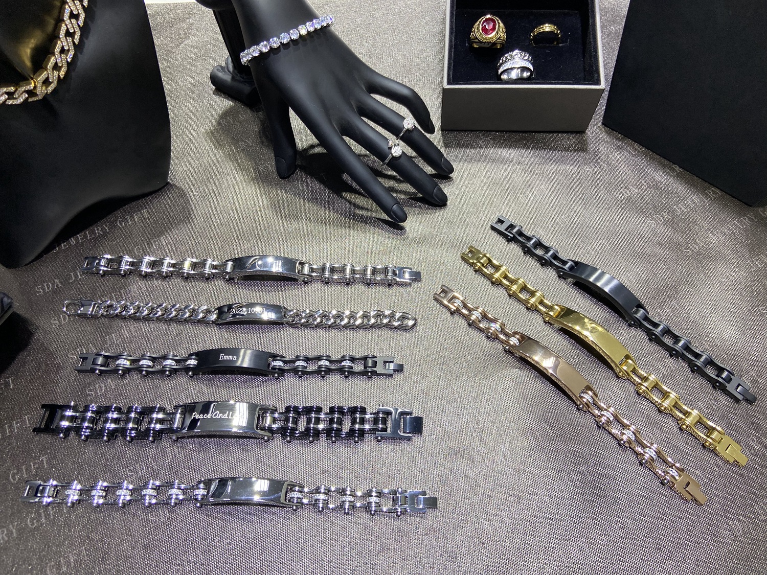 複数のデザイン無料レーザー彫刻銘板記念ブレスレットバラ金黒色鋼色金色手環男女家族