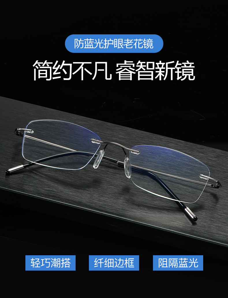 金属快適超軽量縁なし縁取り老眼鏡ファッションブルーレイ防止男女ハイビジョン保護老眼鏡