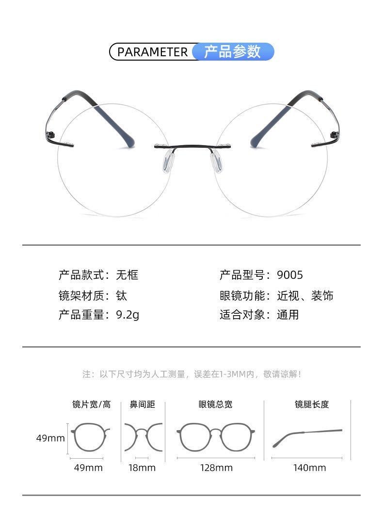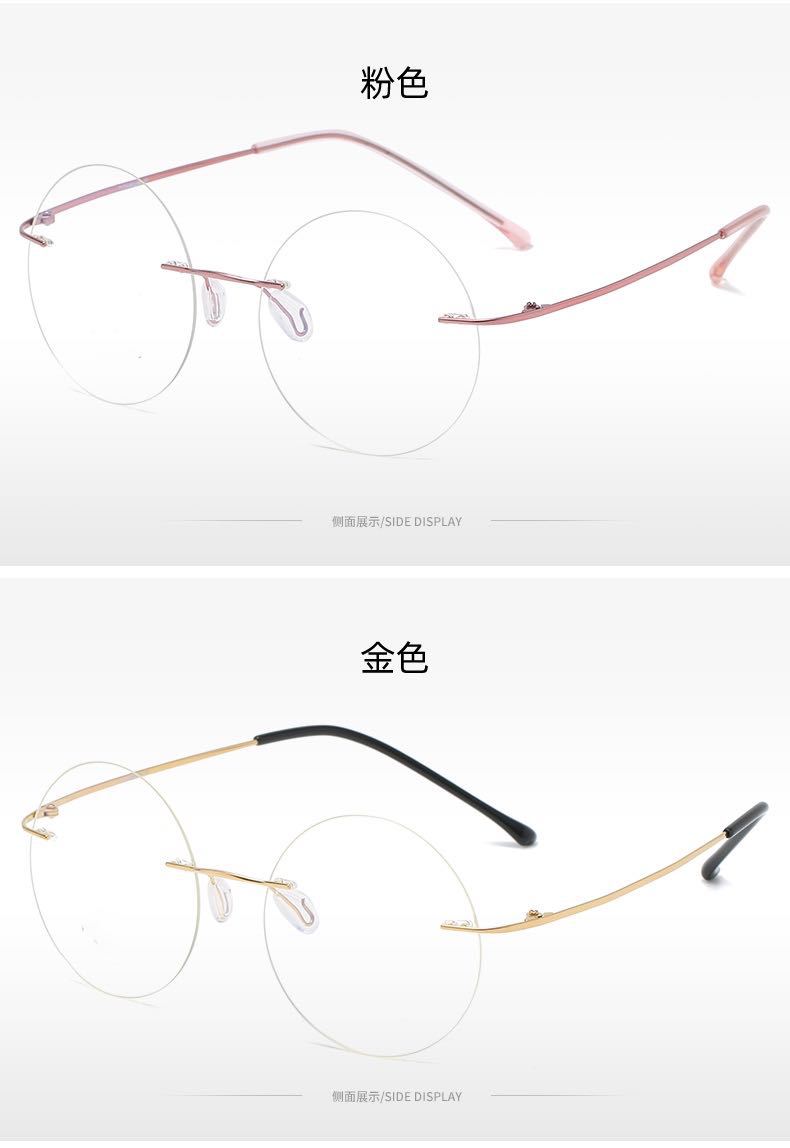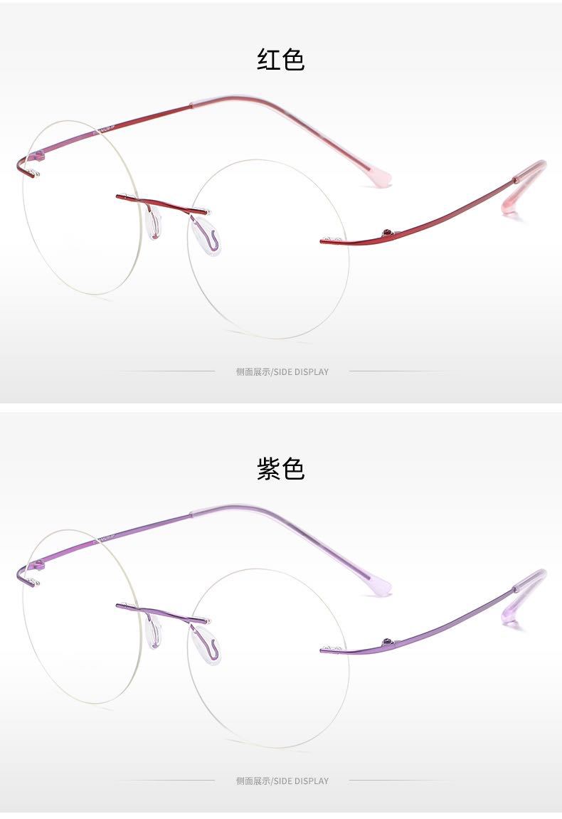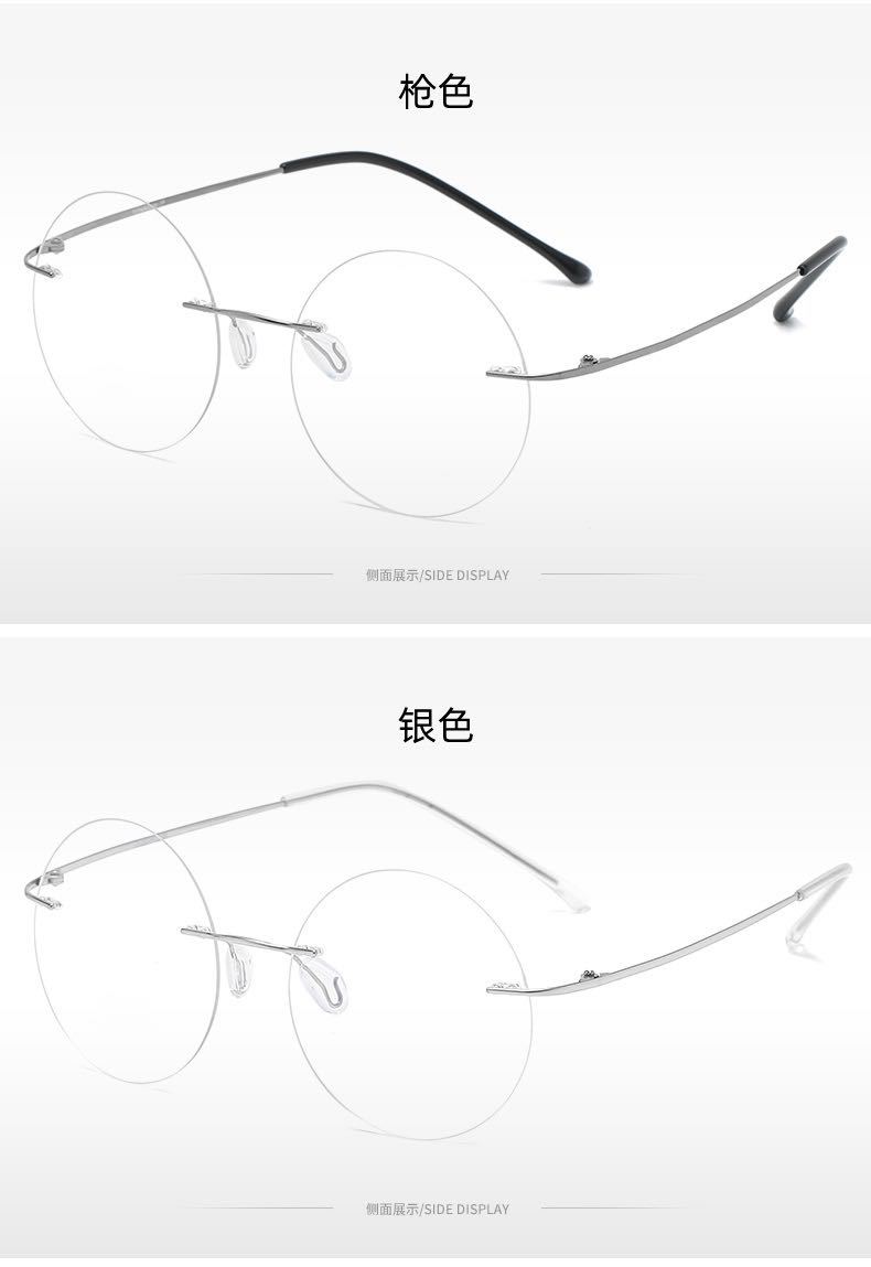 超軽量円形合金ブルーライト平光鏡近視眼鏡フレームレス眼鏡フレーム男女平光鏡9005