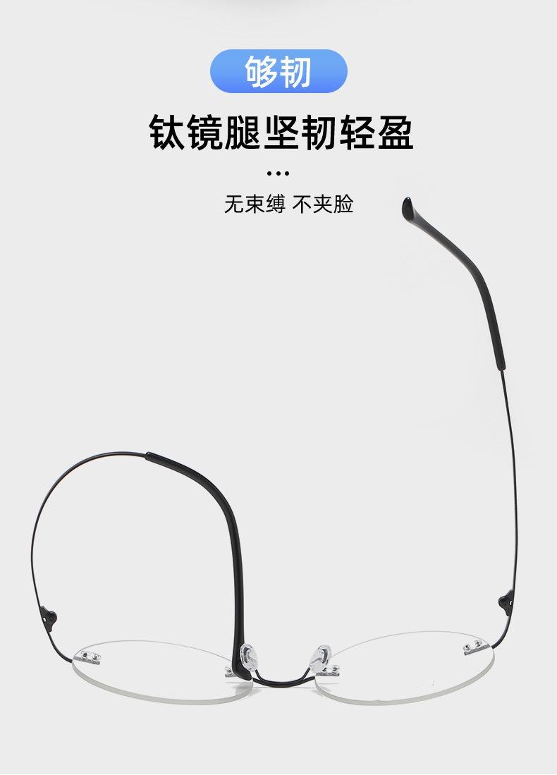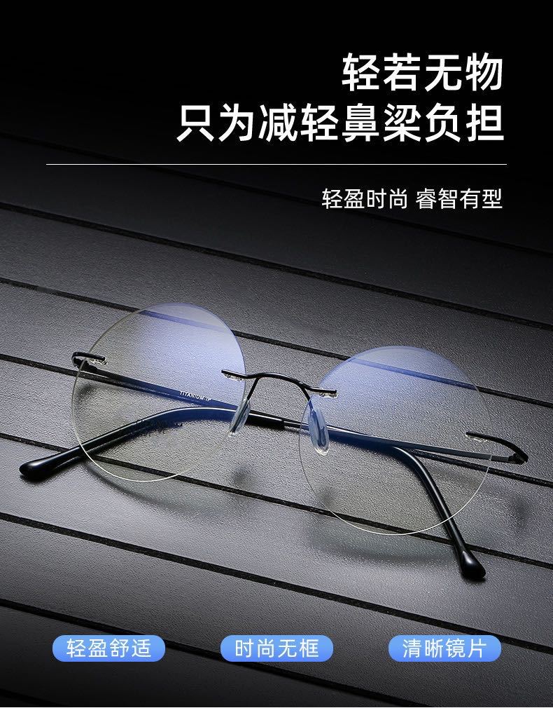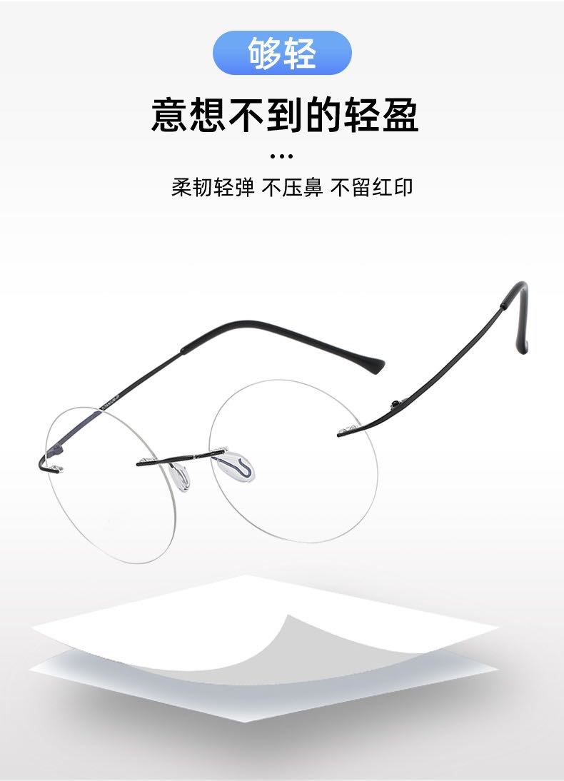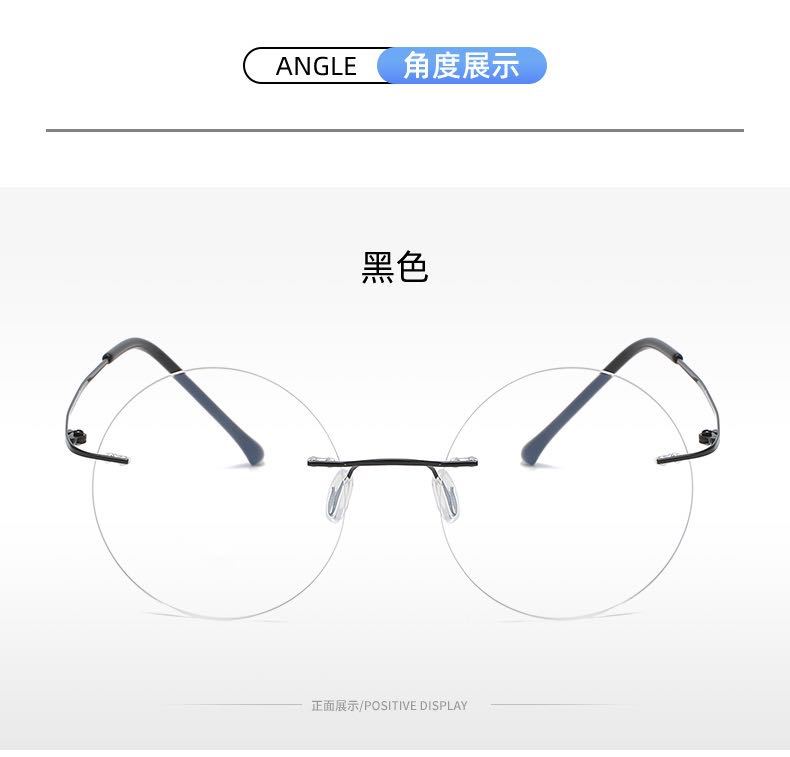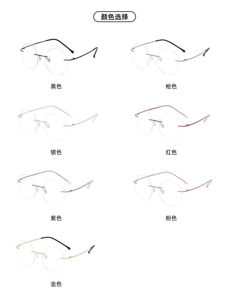 超軽量円形合金ブルーライト平光鏡近視眼鏡フレームレス眼鏡フレーム男女平光鏡9005