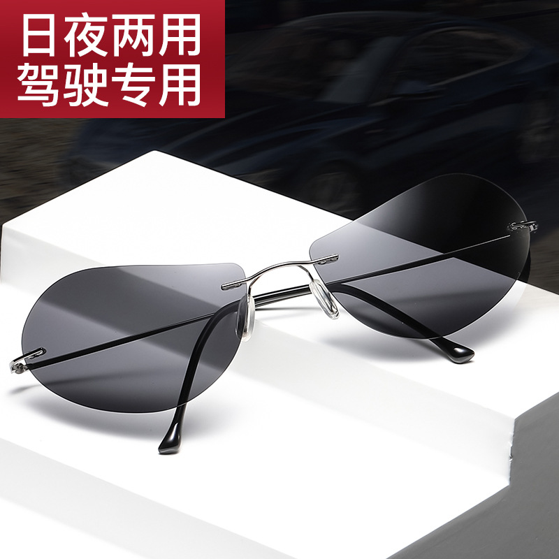 新型超軽量偏光無枠変色サングラス男性車運転ガマミラー昼夜両用メガネ