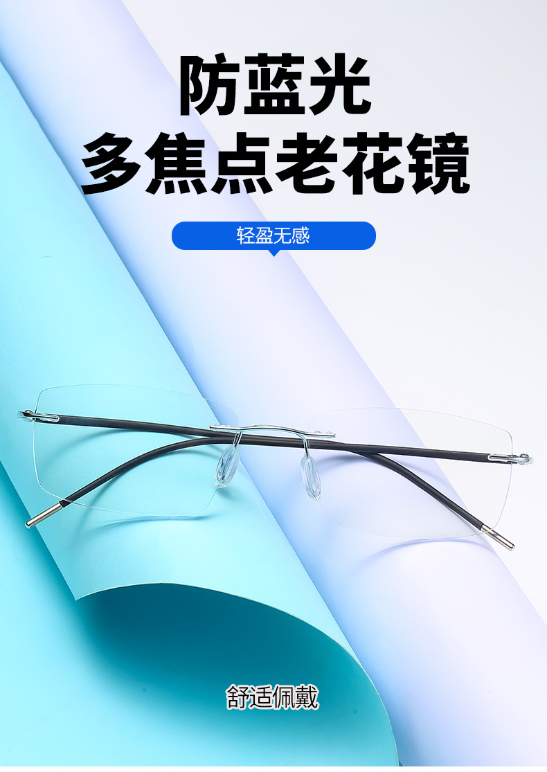 角型フレームレス超軽量合金老眼鏡ブルーレイ防止ズーム漸進多焦点老眼鏡老人眼鏡