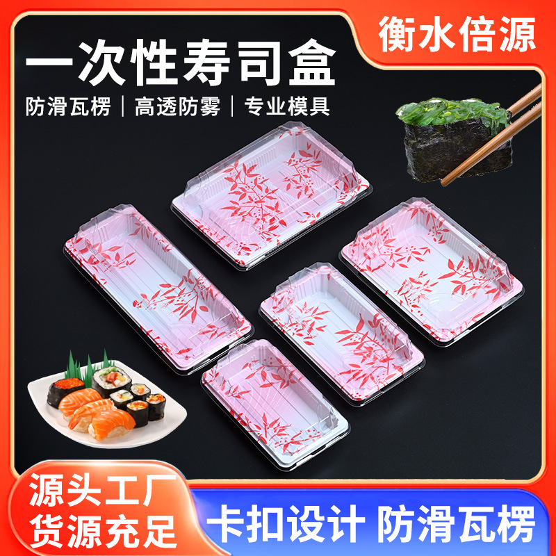 使い捨て寿司箱商用5号日本式プラスチック箱サーモン刺身プリント露店寿司包装箱