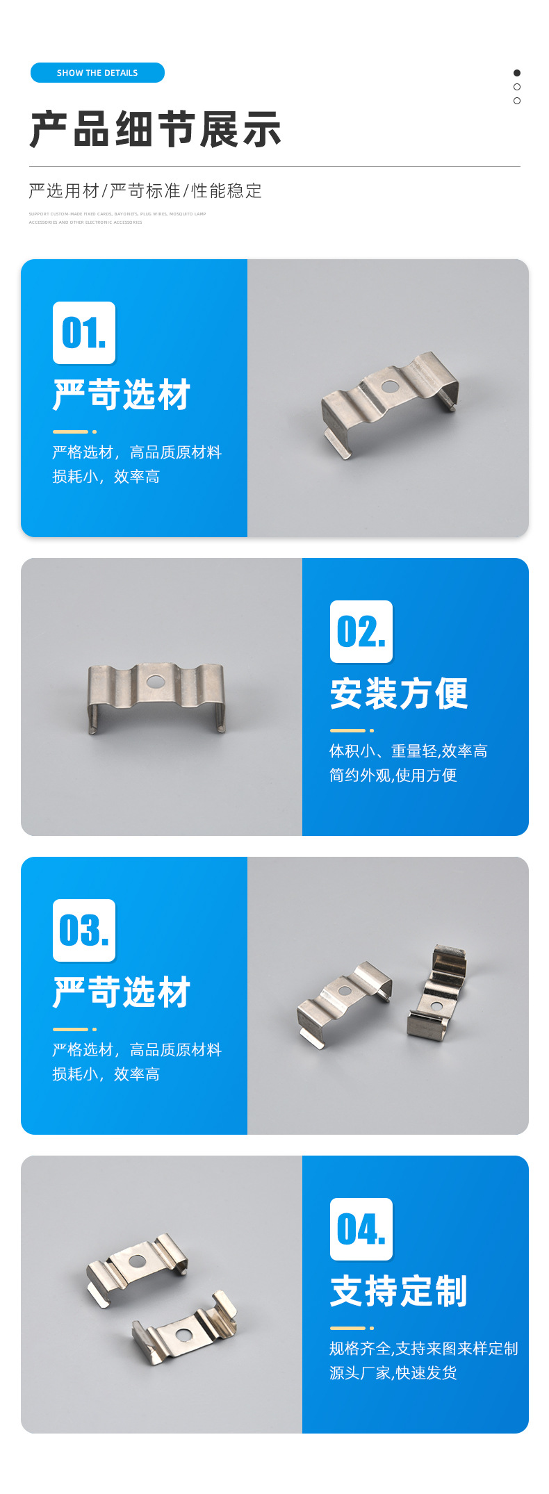 マルチ仕様単穴鉄ニッケルメッキ LED ライトストリップホルダーバックルホームセンター照明用品アクセサリー部品卸売