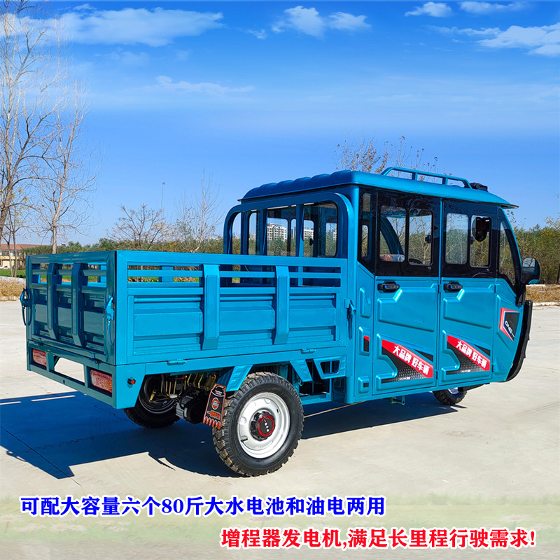 給油可能電気両用増程器拡幅四門五座二列電動左置きハンドル電動三輪車