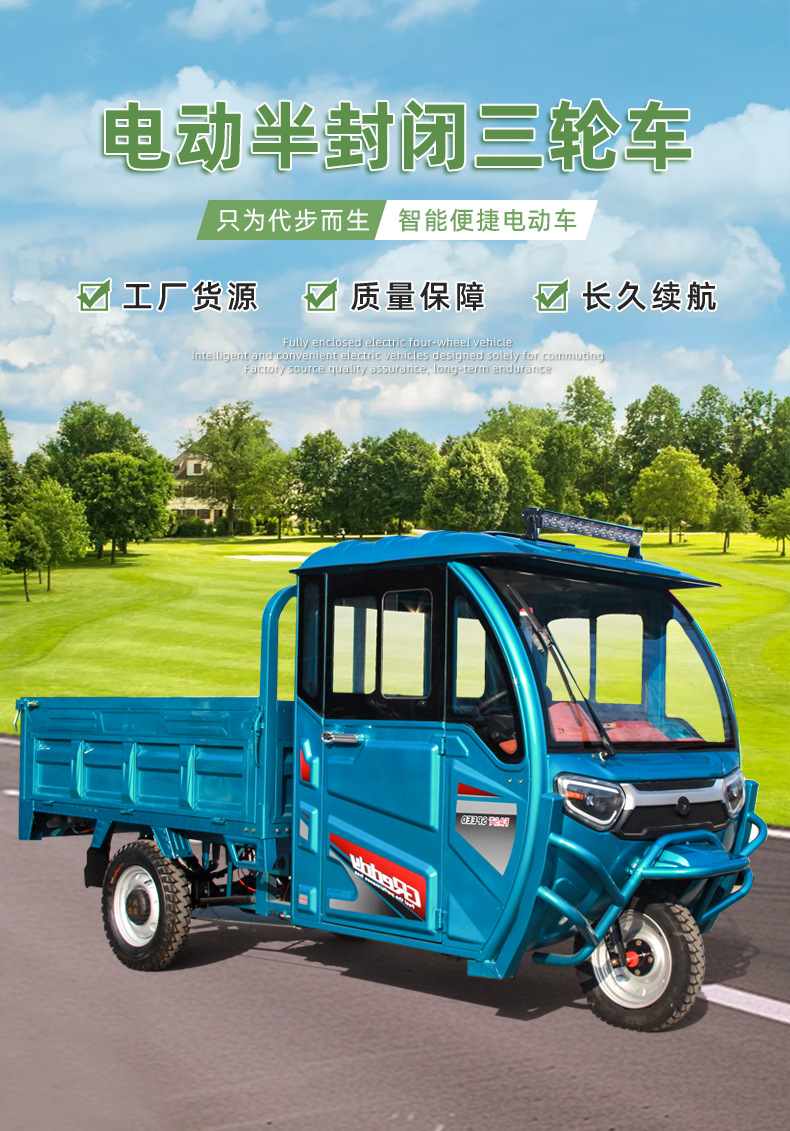 新国标可上牌电动三轮车货车半封闭客货两用载重王农用爬坡王载货