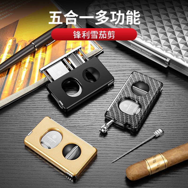 茄龙雪茄剪五合一多功能雪茄剪刀锈钢刀刃平口V口剪烟托通针茄钻
