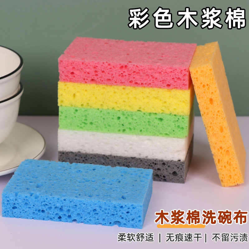 木パルプ綿たわし、食器洗い用木パルプスポンジブロック、吸水マジックワイプ、強力な除染、キッチンポットブラシ、耐久性