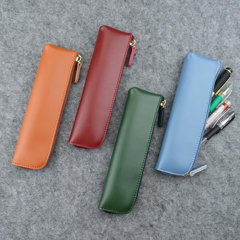 ソリッドカラーの鉛筆ケース、新鮮なレザーPVCミニペンケース、高校生向けのクリエイティブでシンプルで便利な鉛筆