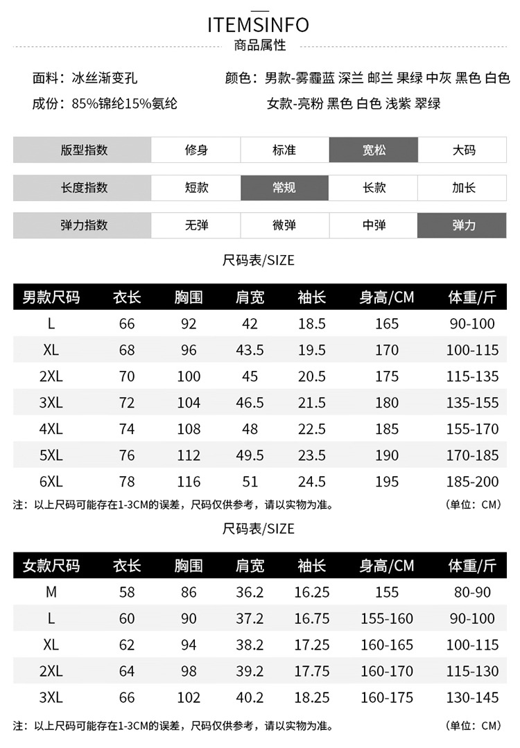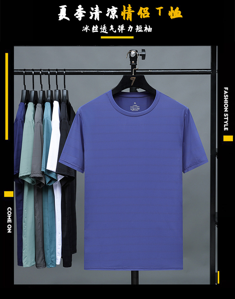 男女兼用バタフライネットラウンドネックアイスシルク無地夏ランニングボリュームナイロンスパンデックス速乾性高弾性ルーズ大きいサイズカジュアル半袖
