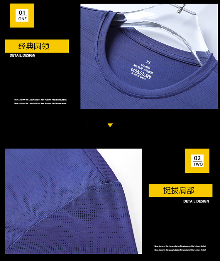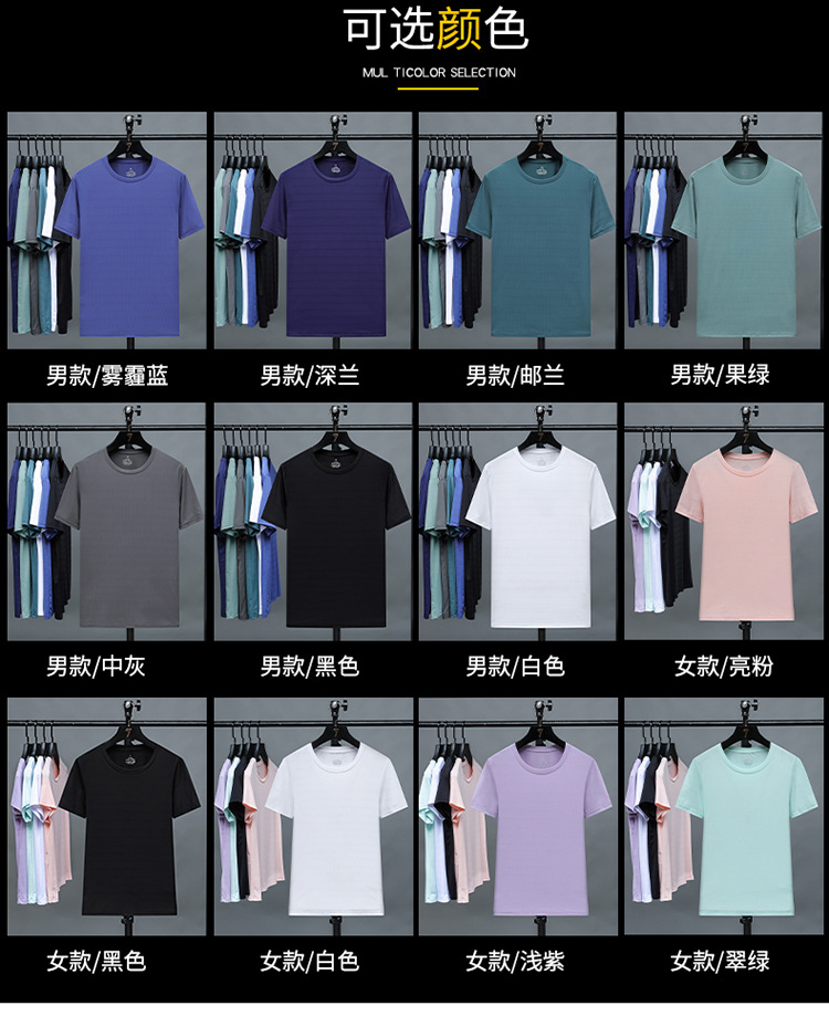 蝶網氷糸半袖古典的な起爆丸襟速乾男女同種生放送起爆金純色大サイズ上着