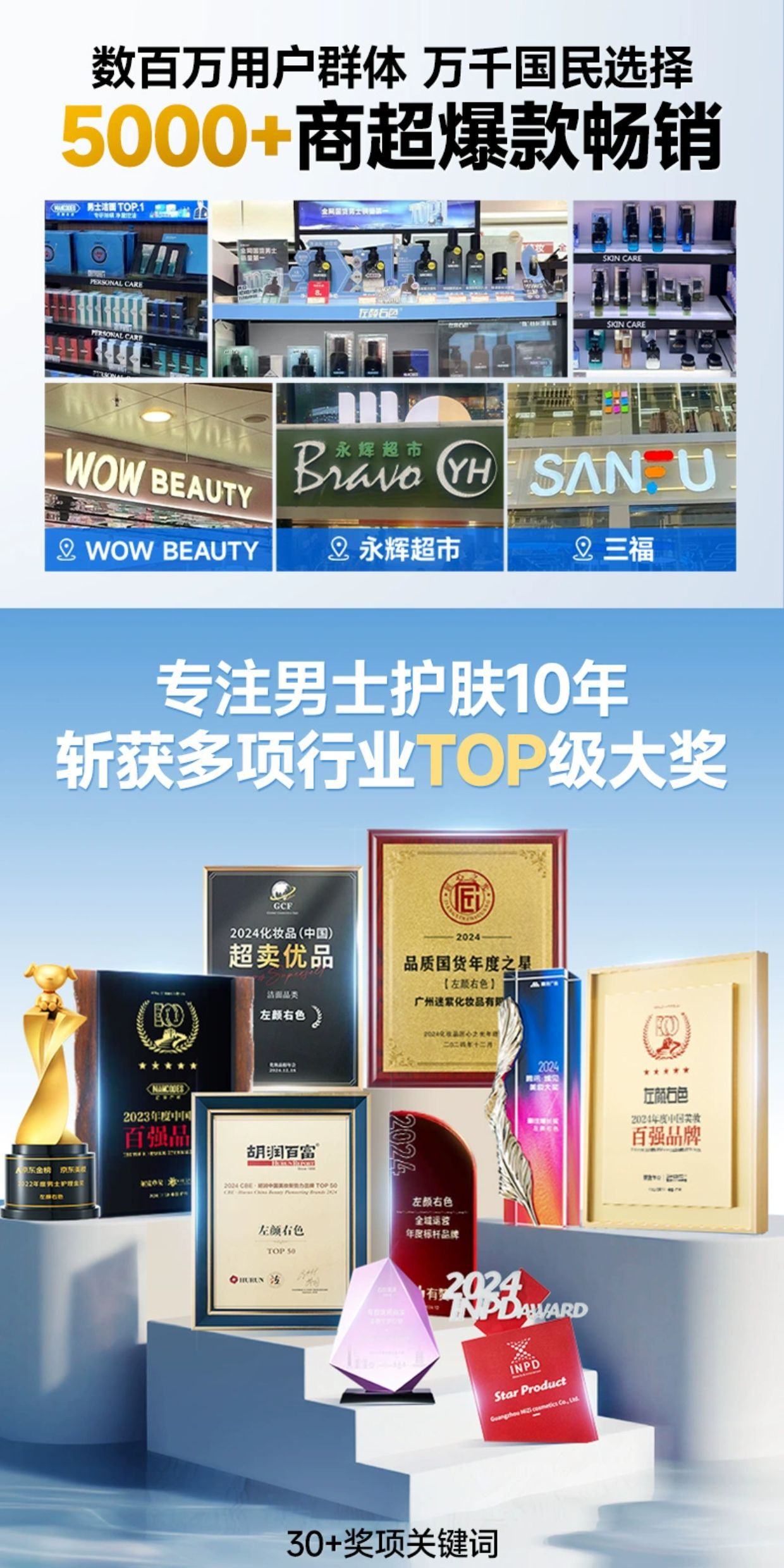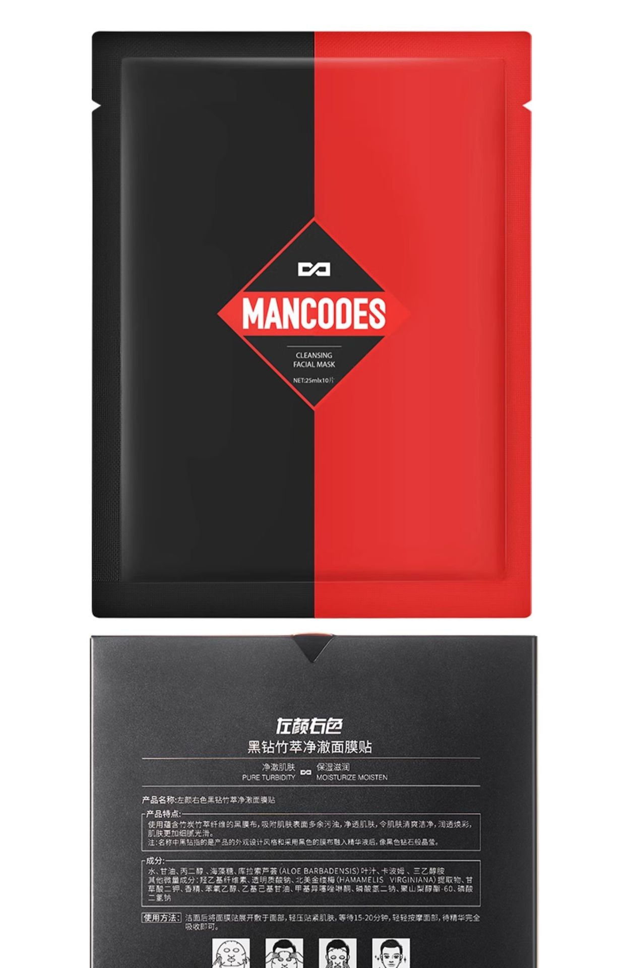 左颜右色单片男士面膜贴控油舒缓美容院修护收缩毛孔补水保湿面膜