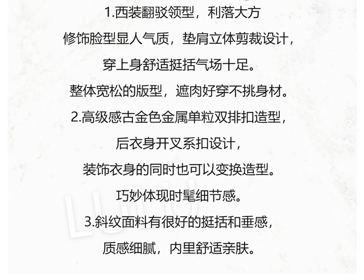 2730春の服の新型の大きいサイズの婦人服の職業はスーツのスーツのスーツを修理します。