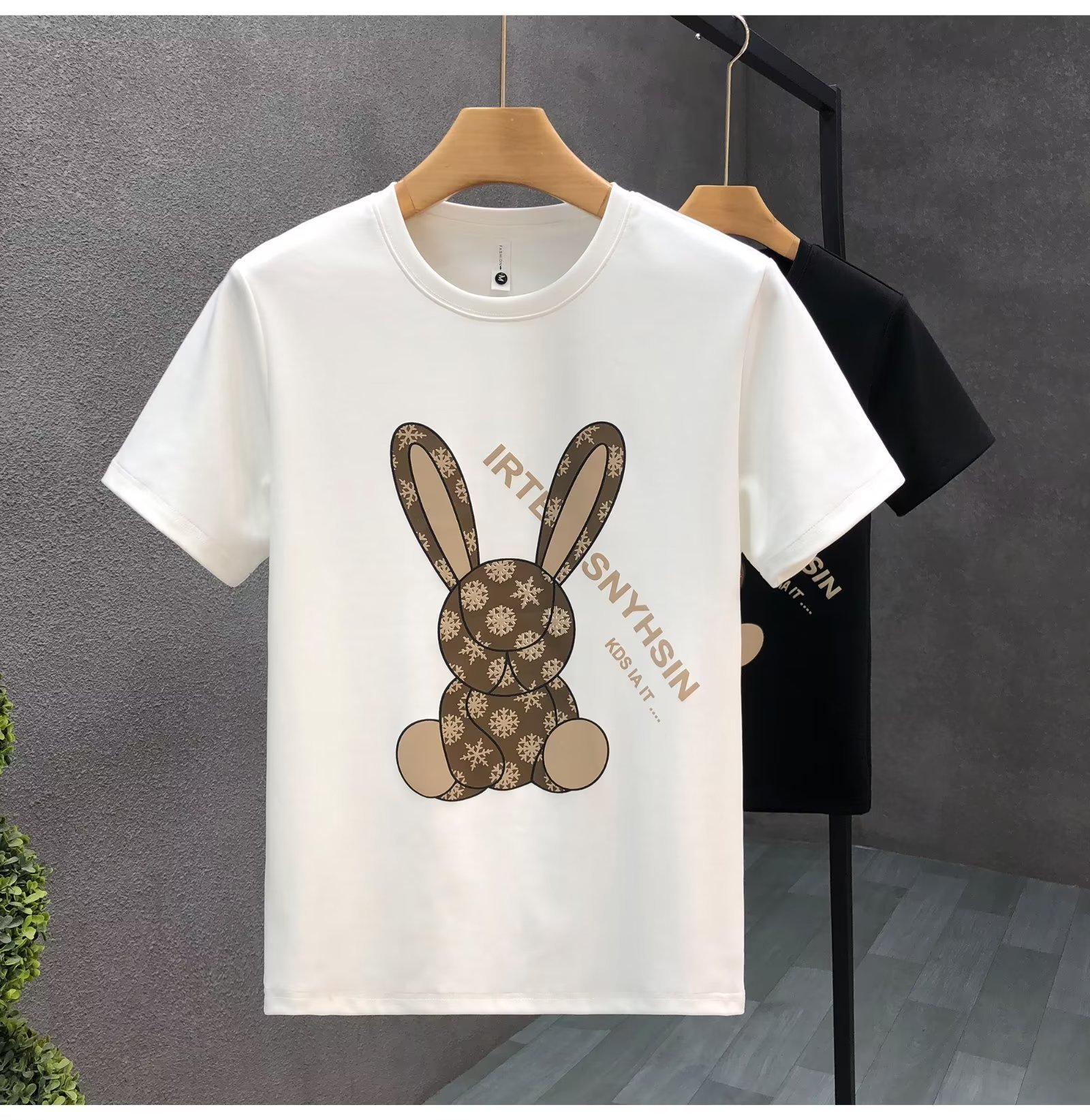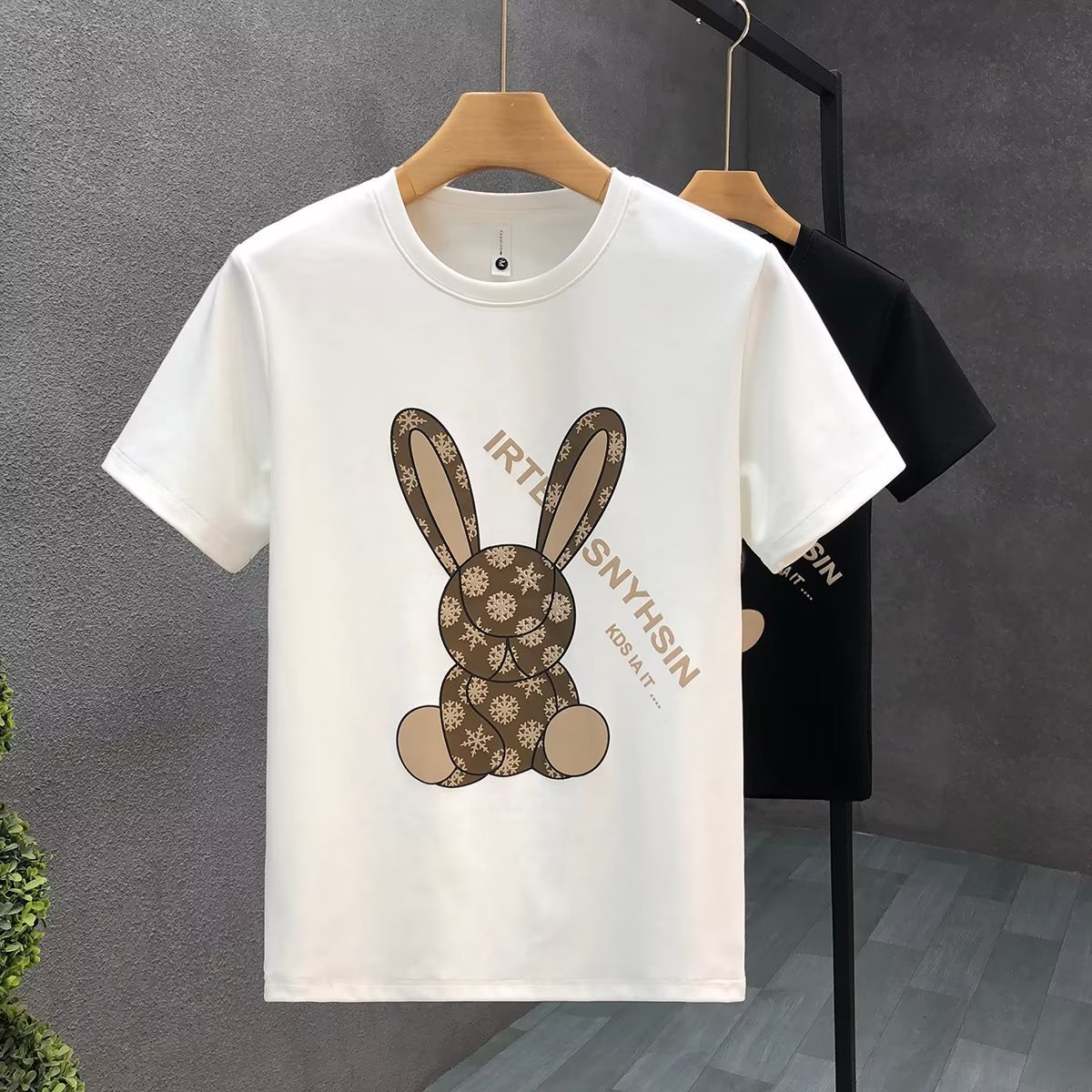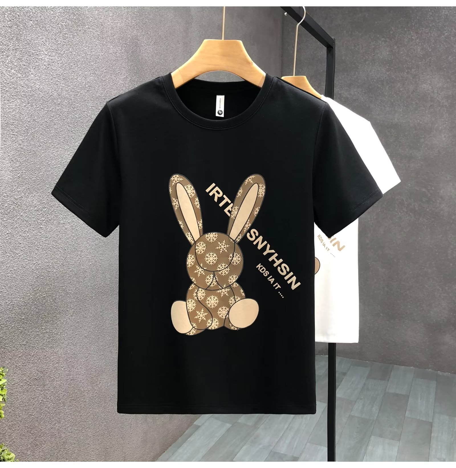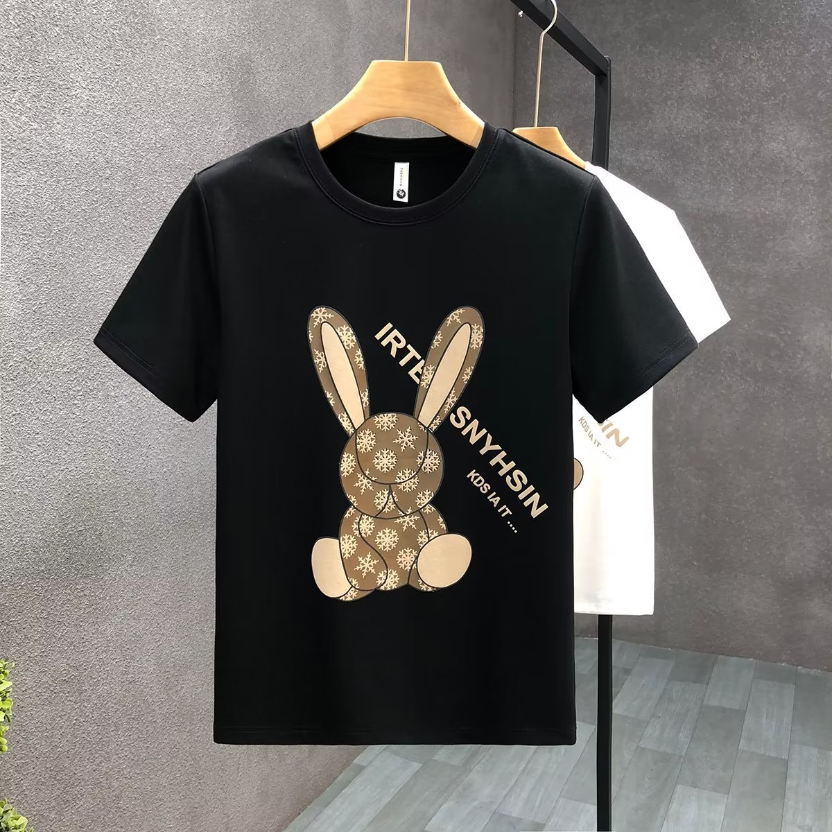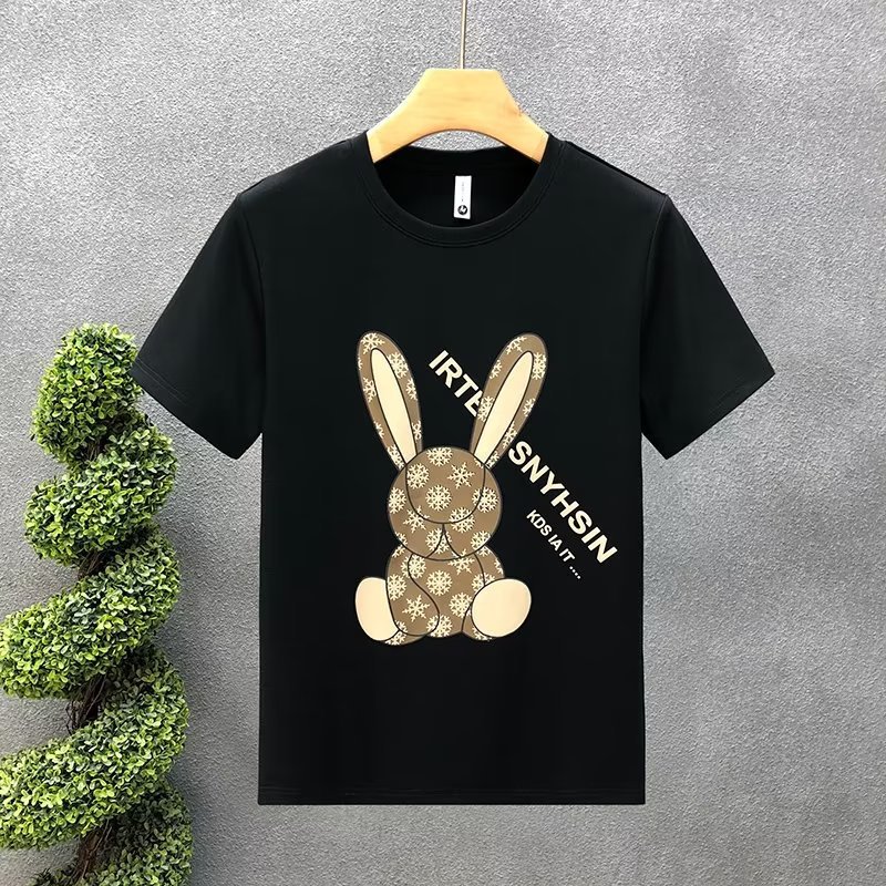ハイエンドの重いポンドの漫画のウサギのプリントの半袖のtシャツの男性の潮の札の2023夏の新型の男性の底のシャツの上着