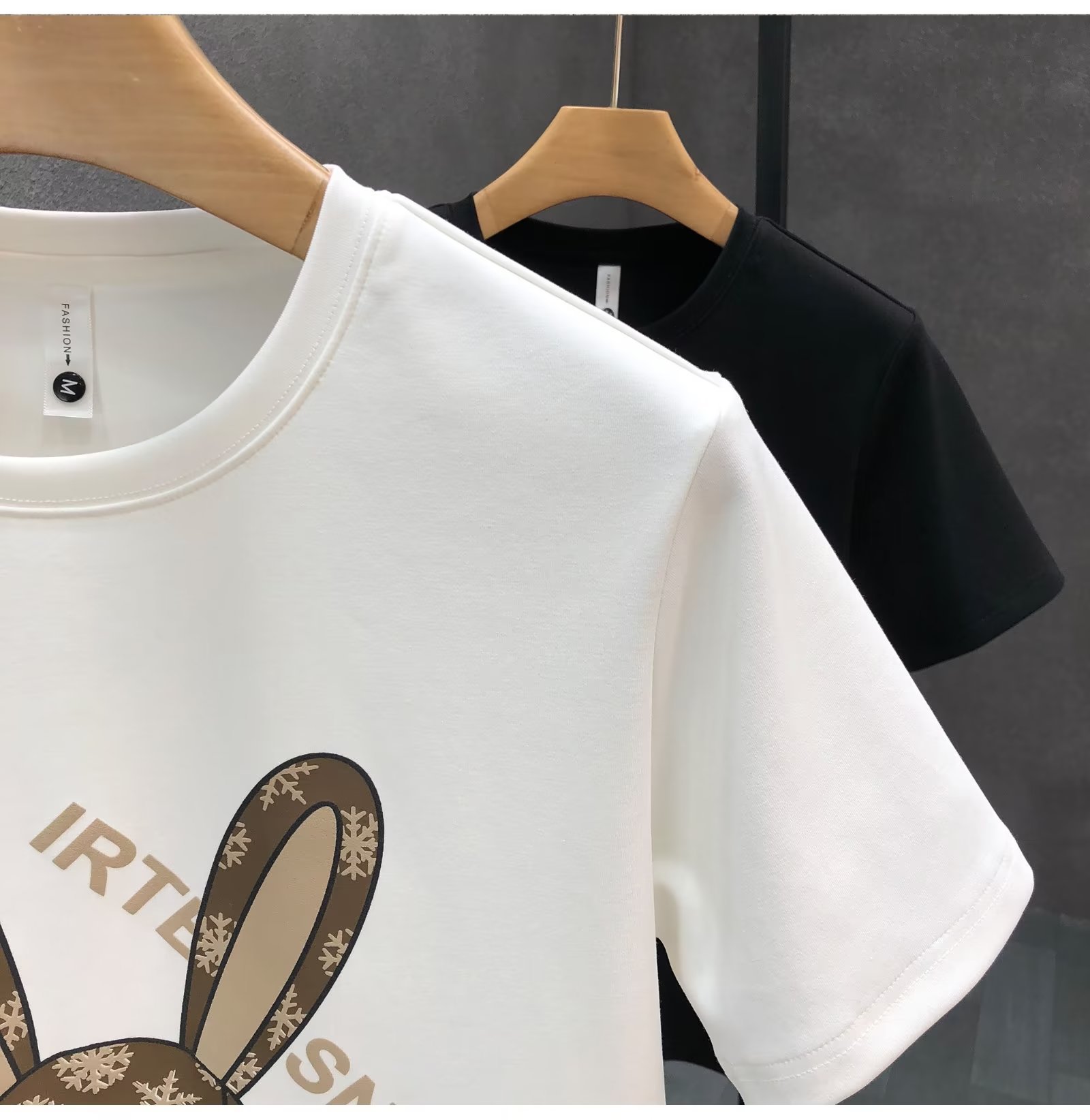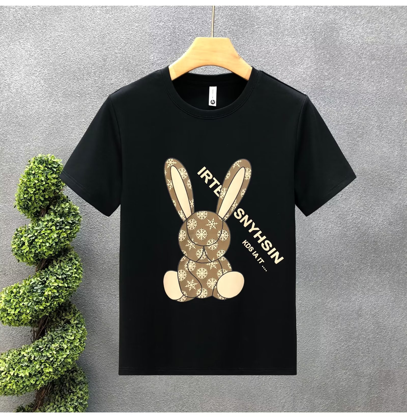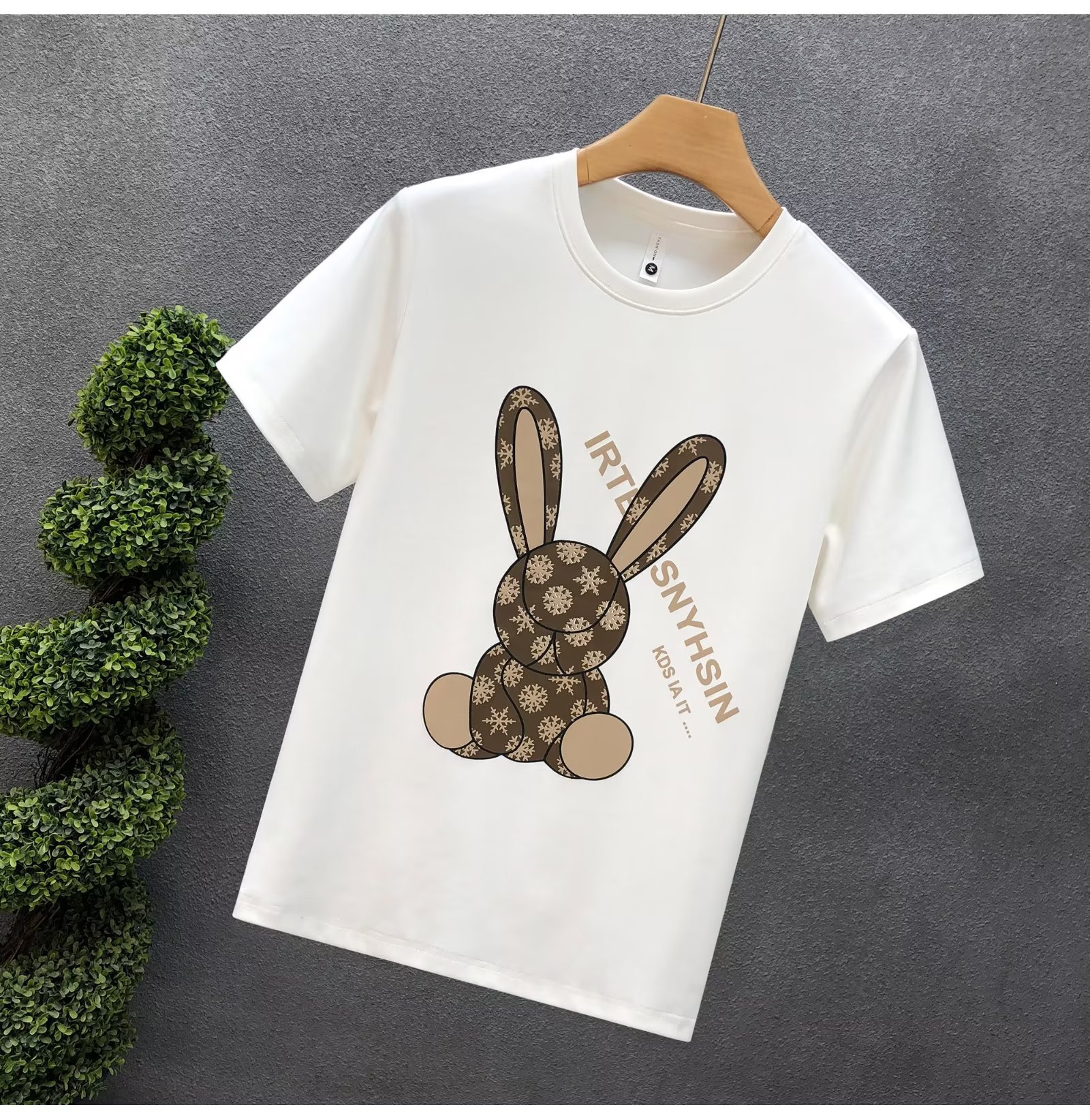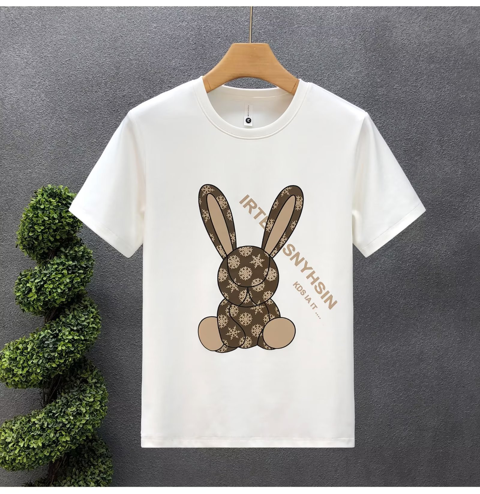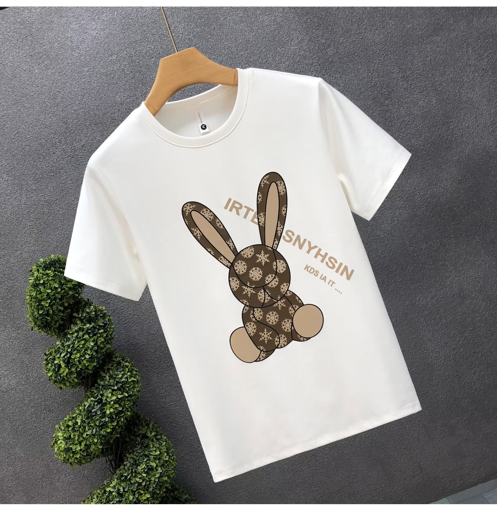 ハイエンドの重いポンドの漫画のウサギのプリントの半袖のtシャツの男性の潮の札の2023夏の新型の男性の底のシャツの上着