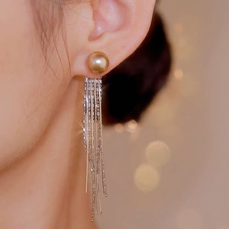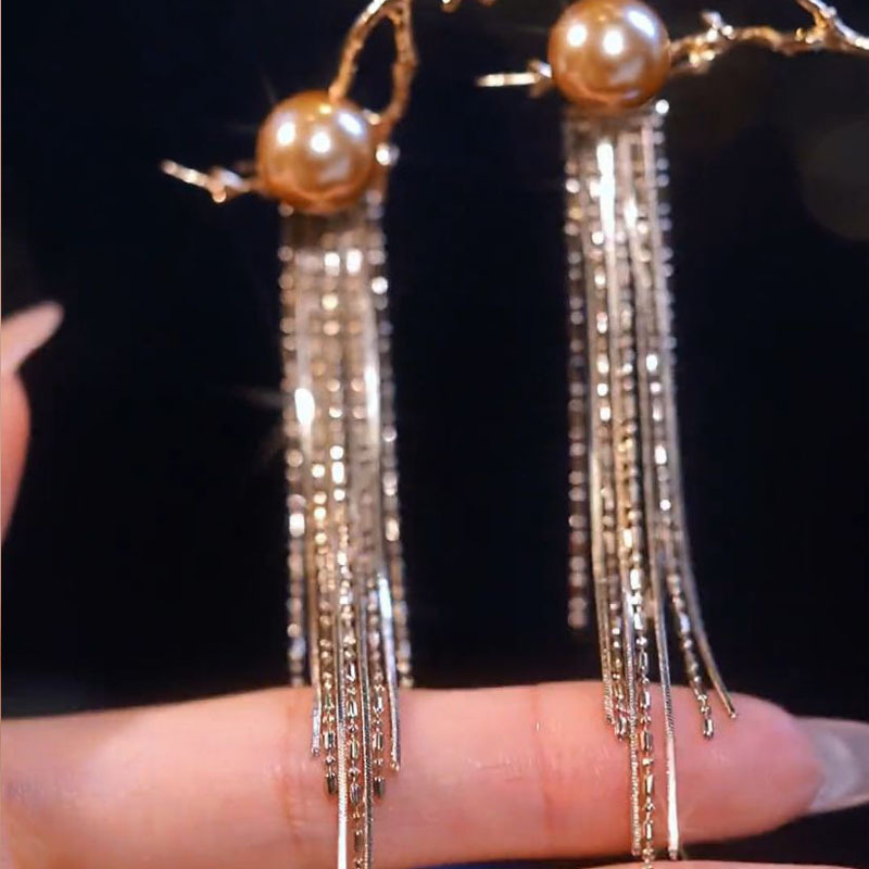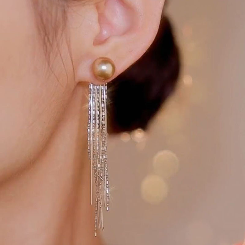 香槟轻奢珍珠流苏耳环女长款高级感时尚气质耳饰925银针新款耳坠