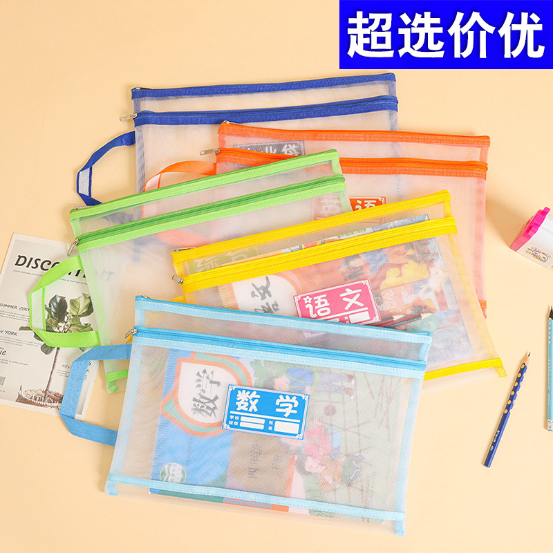 二層メッシュ科目分類バッグナイロンメッシュ科目バッグファイルバッグ学生テスト用紙バッグ宿題収納バッグ