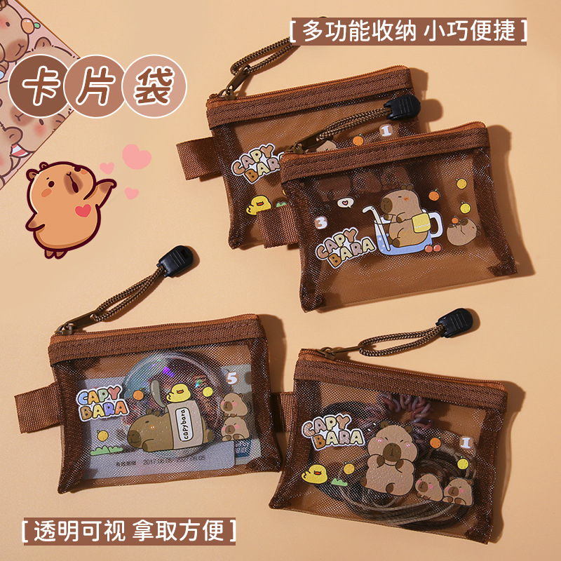 唐芊亿卡皮巴拉迷你收纳袋卡包收纳小零件透明硬币包身份证拉链袋