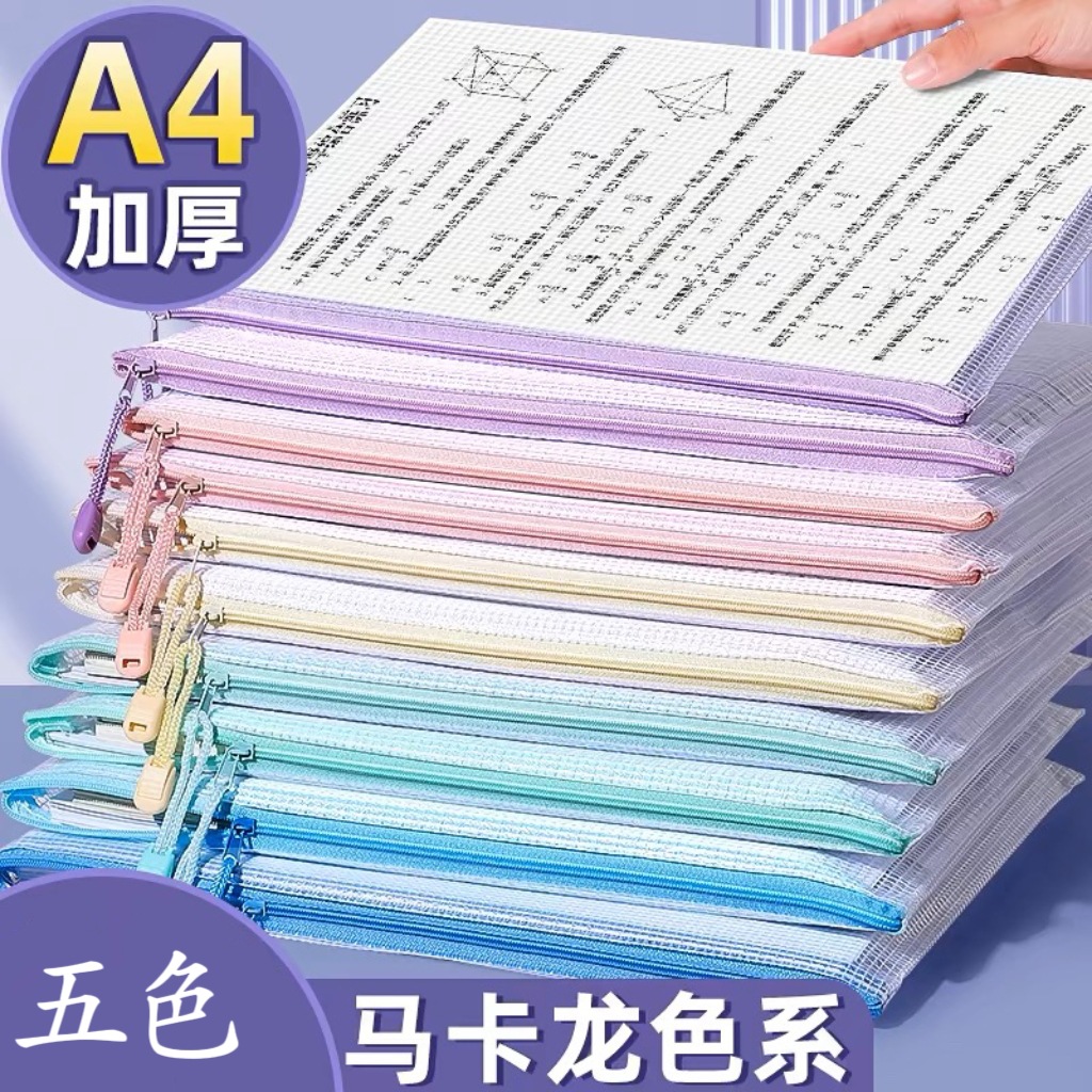 a4拉链袋马卡龙浅色系网格袋文件袋拉链款加厚防水学生文具收纳袋