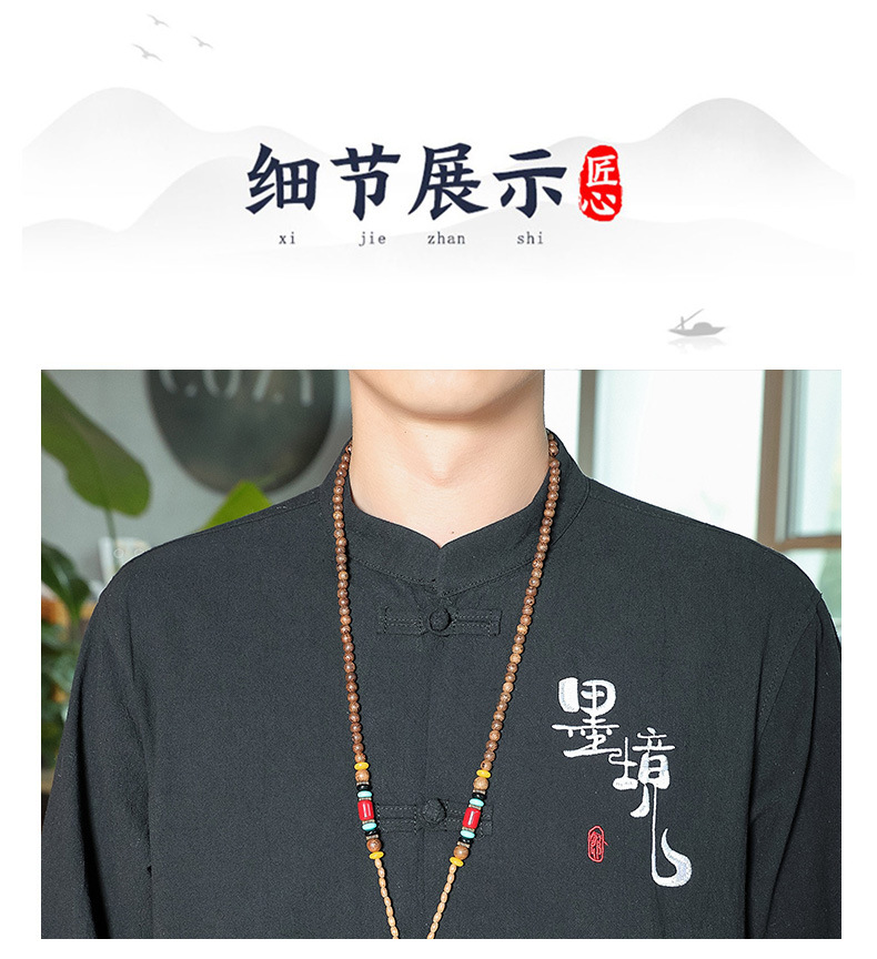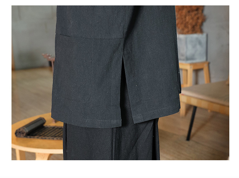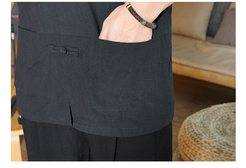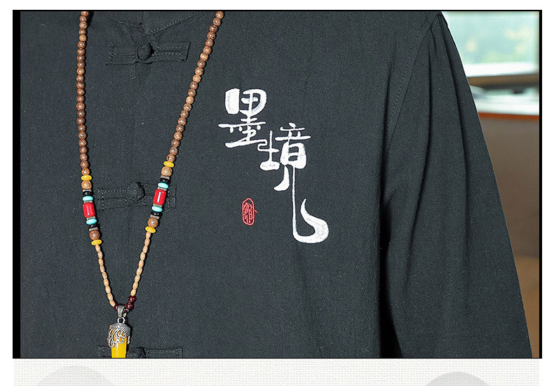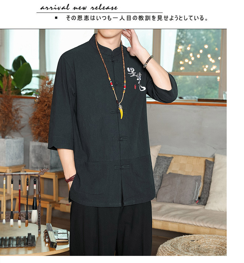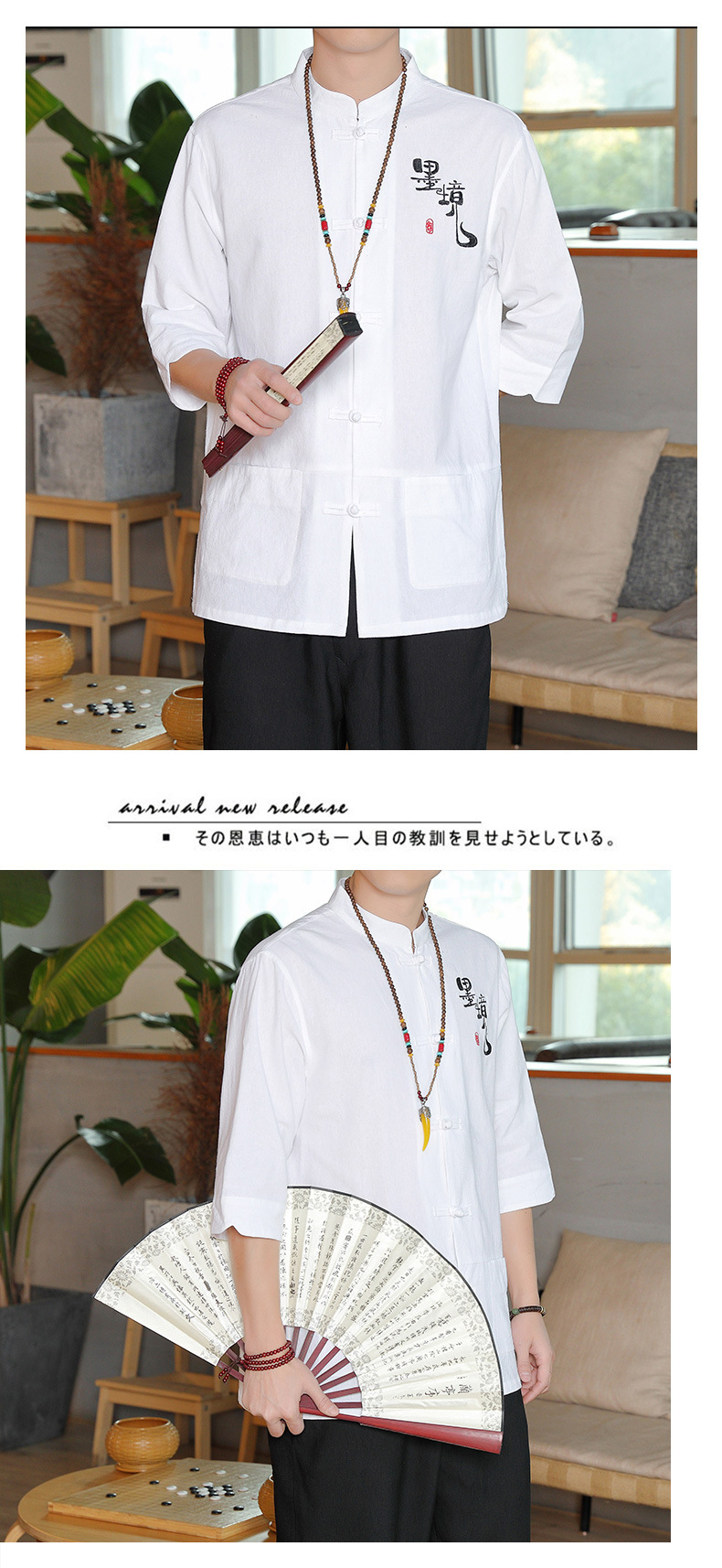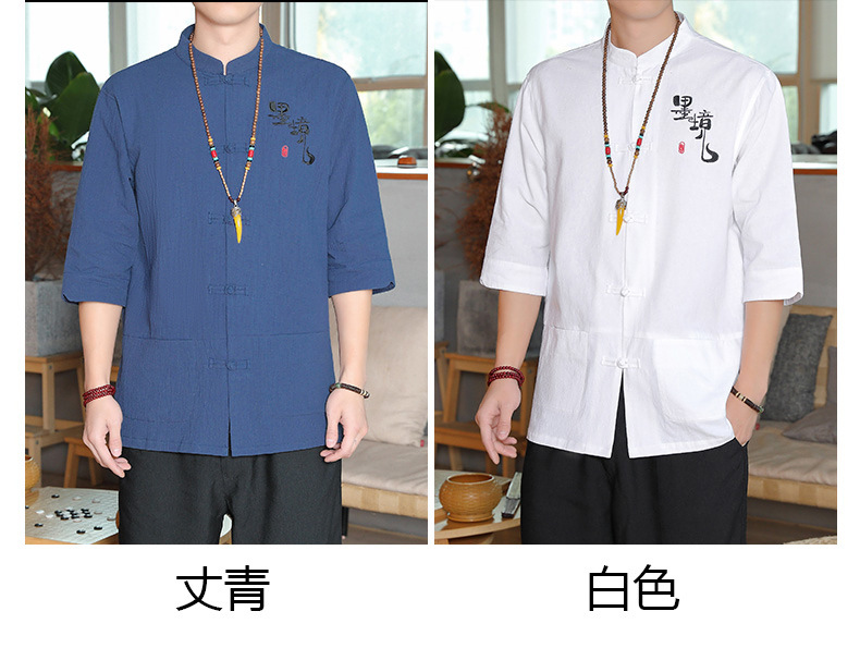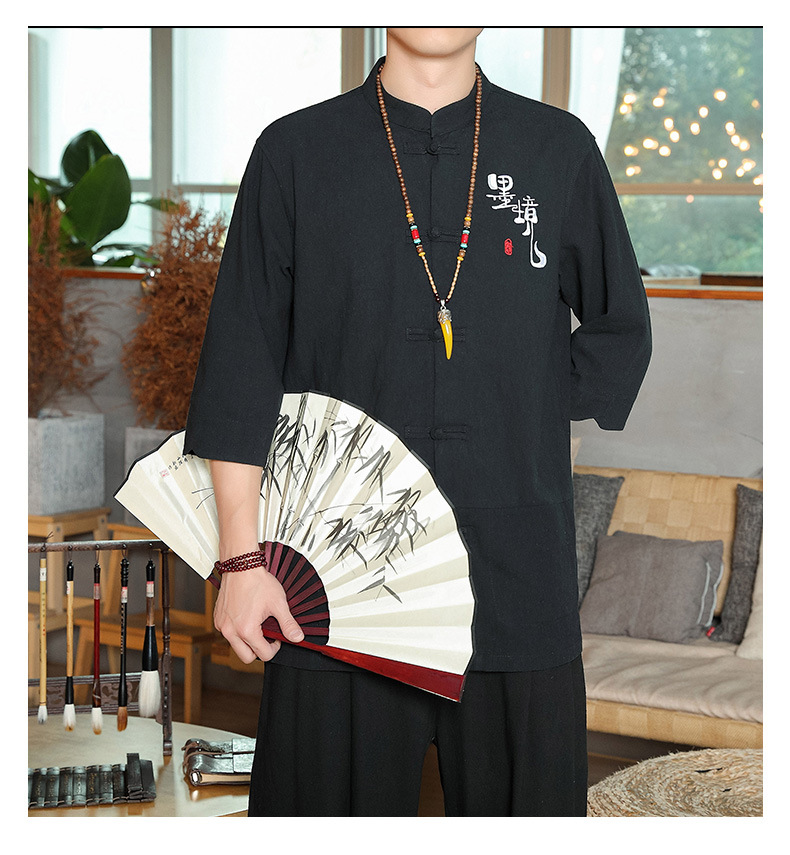 卸売り中国風紳士服復古風半袖tシャツ綿麻唐装漢服七分袖立襟tシャツ半袖男