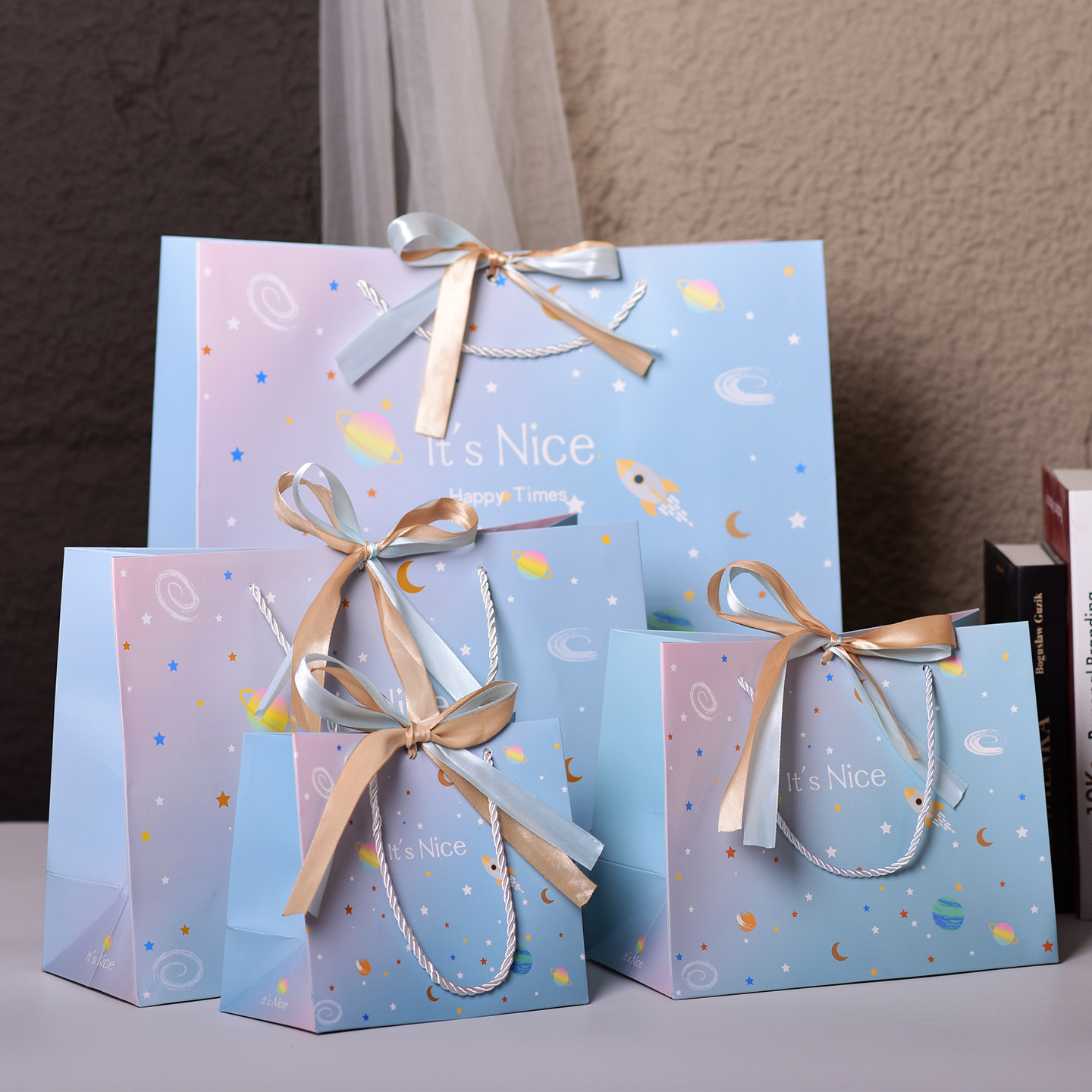 ins 星空ギフトバッグホリデーギフトバッグ割引ポータブル紙袋包装袋リボンシールバッグユニバーサル