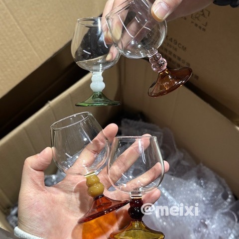 雲ユーカリ野オリジナルデザイン手作りガラス描花高足カップジュースカップ高ホウ素シリコンガラス