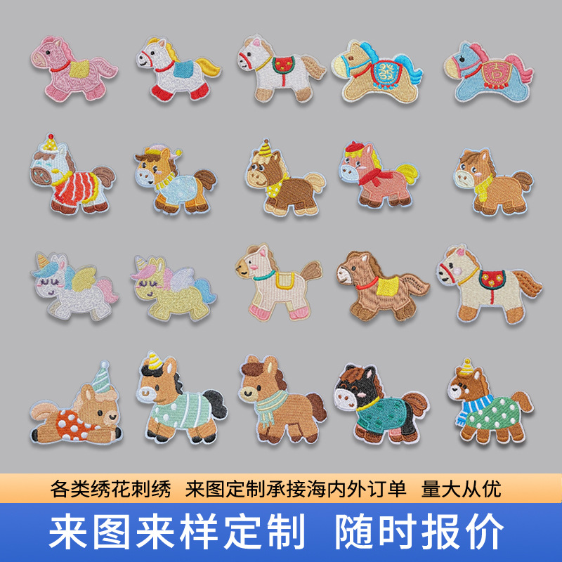 绣花贴可爱动物马年小马驹自粘刺绣布贴衣服补丁手机壳红包装饰贴