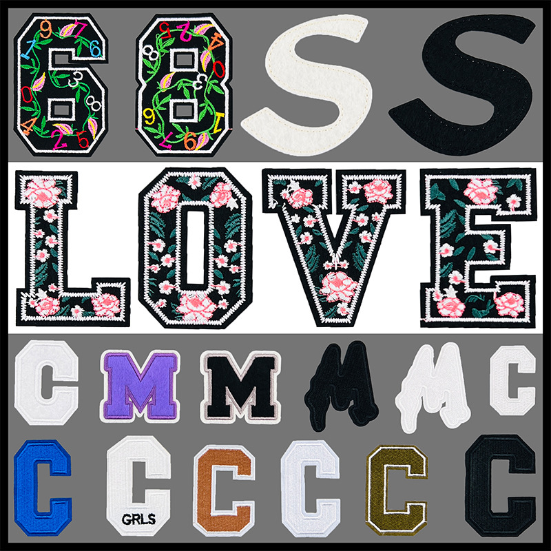 英語のアルファベットのロゴのバッジの刺繍の布は現物の卸売りの異形のアルファベットのパッチを貼ってコンピュータの刺繍の標識を貼って布を貼ります。