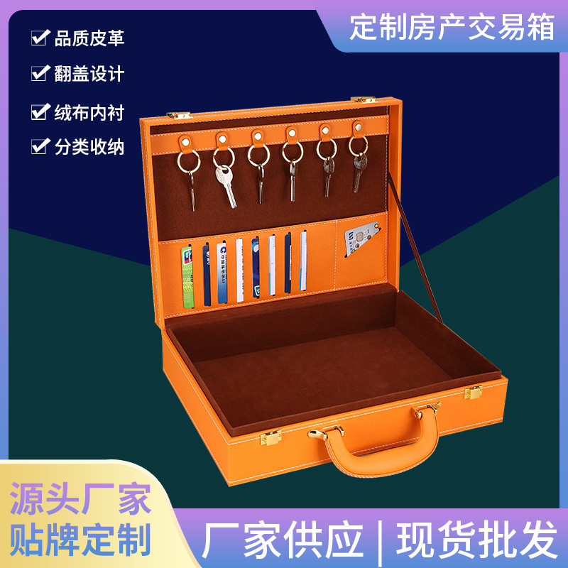 カスタム卸売り皮質交房箱高級鍵手提げスーツケース不動産交房道具箱はロゴを印刷できる