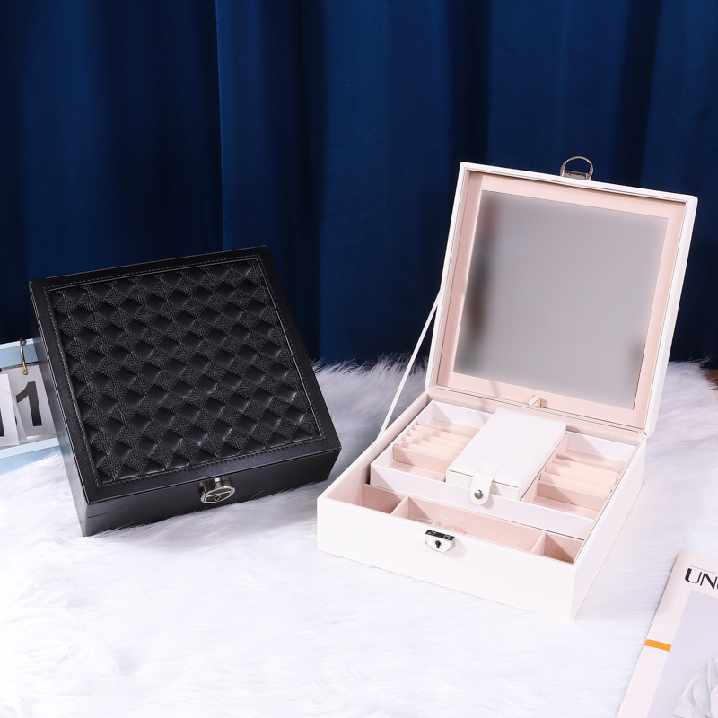 携帯型高級ピアスネックレス収納ケースヨーロッパ式高級ジュエリーリングケース二重家庭用アクセサリーケース卸売り