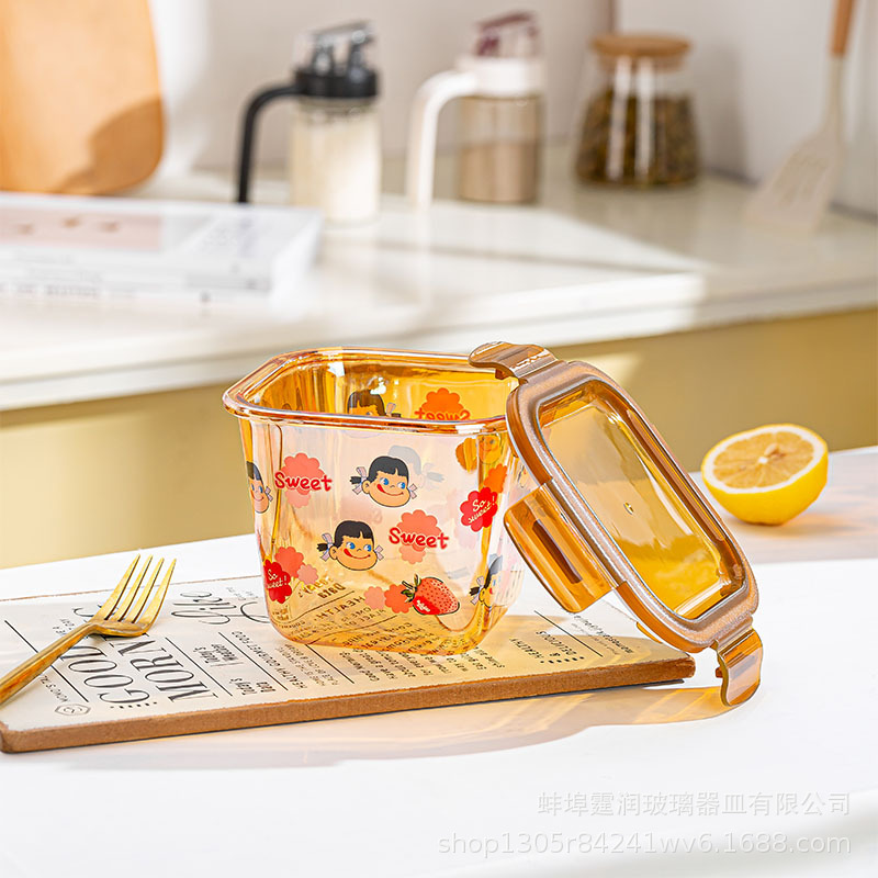 厚いガラスの弁当箱の不二家はマイクロ波の四角形の新鮮な碗の家庭用の新鮮な箱の漫画の学生の弁当箱ができます。