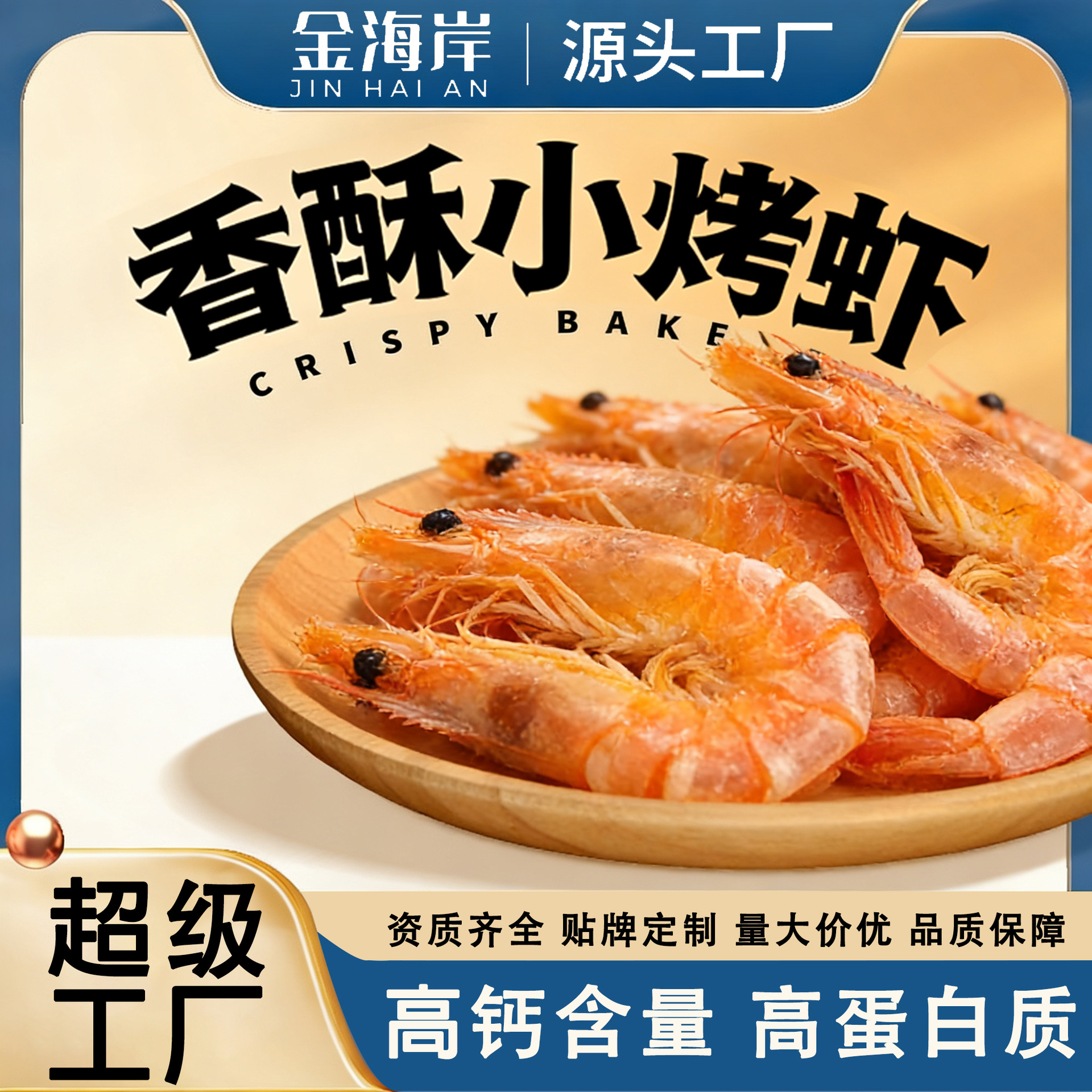 贴牌定制虾干即食烤虾干海鲜干货零食小号干对虾网红休闲零食小吃
