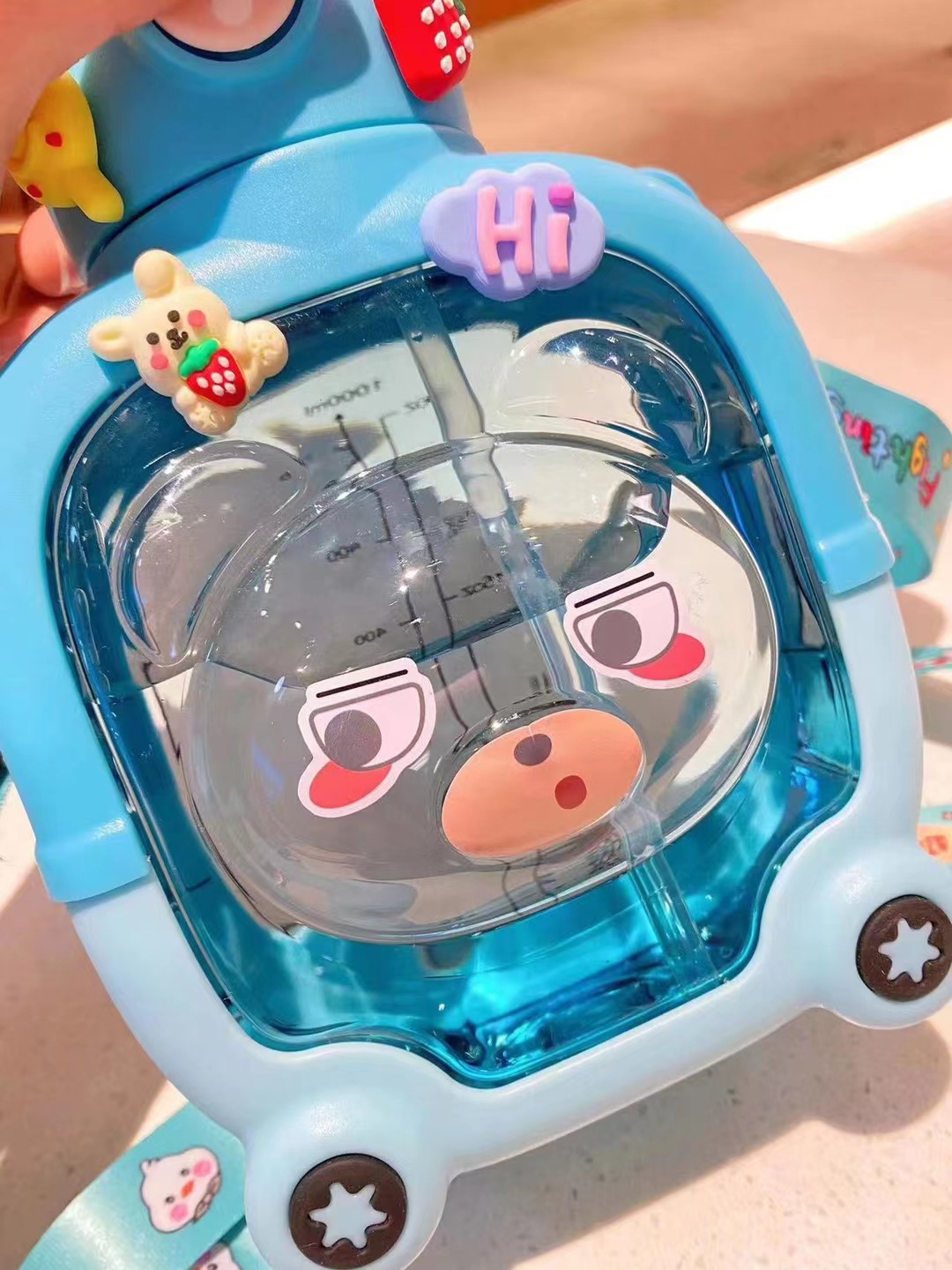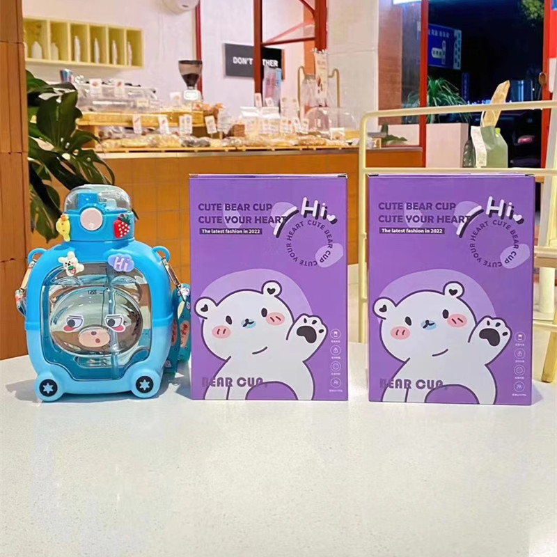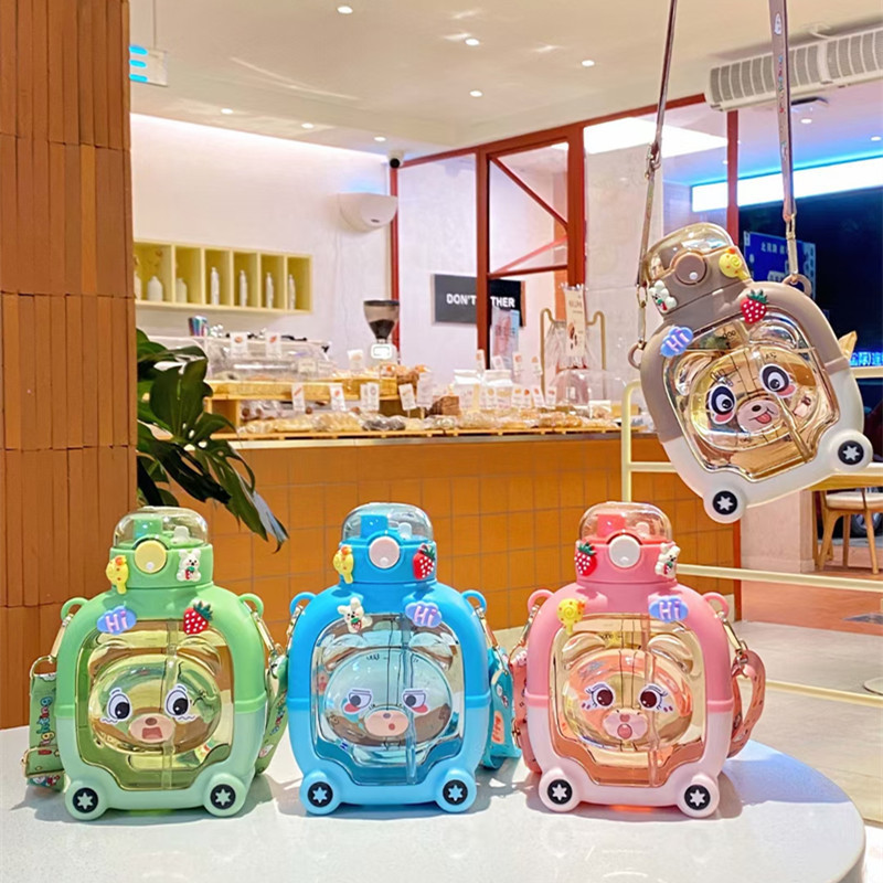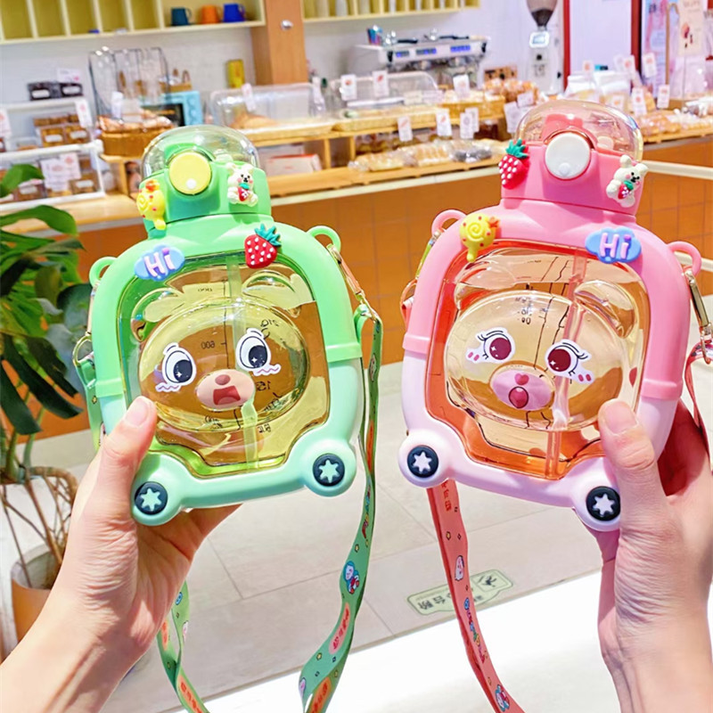 子供用大容量プラスチックカップ漫画熊ストローカップ携帯型ストラップ