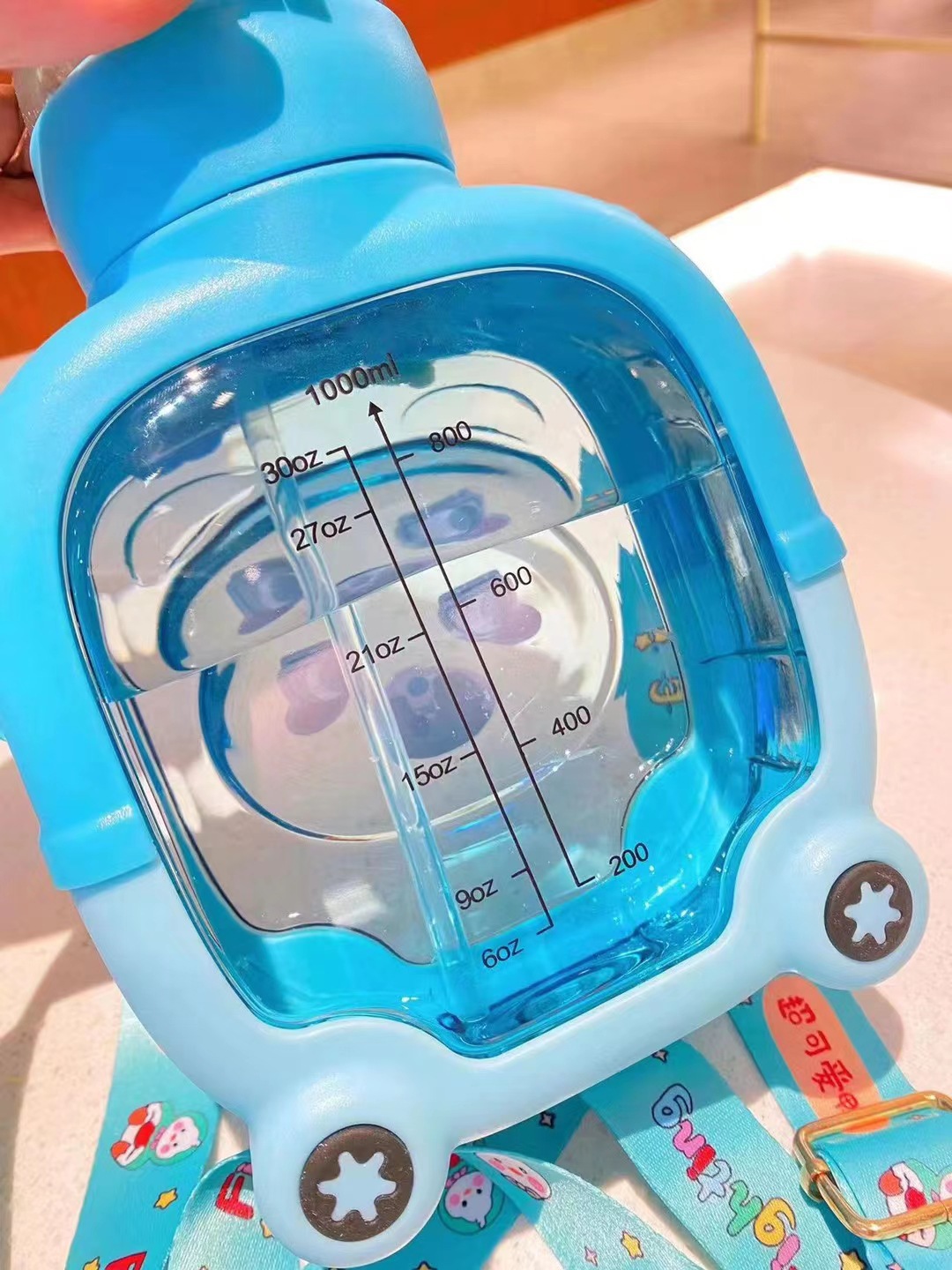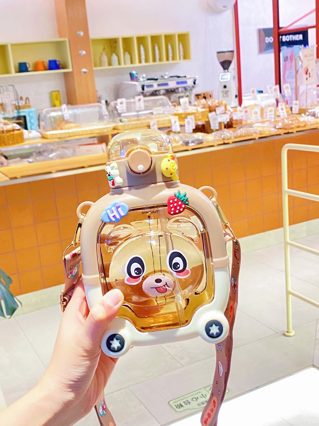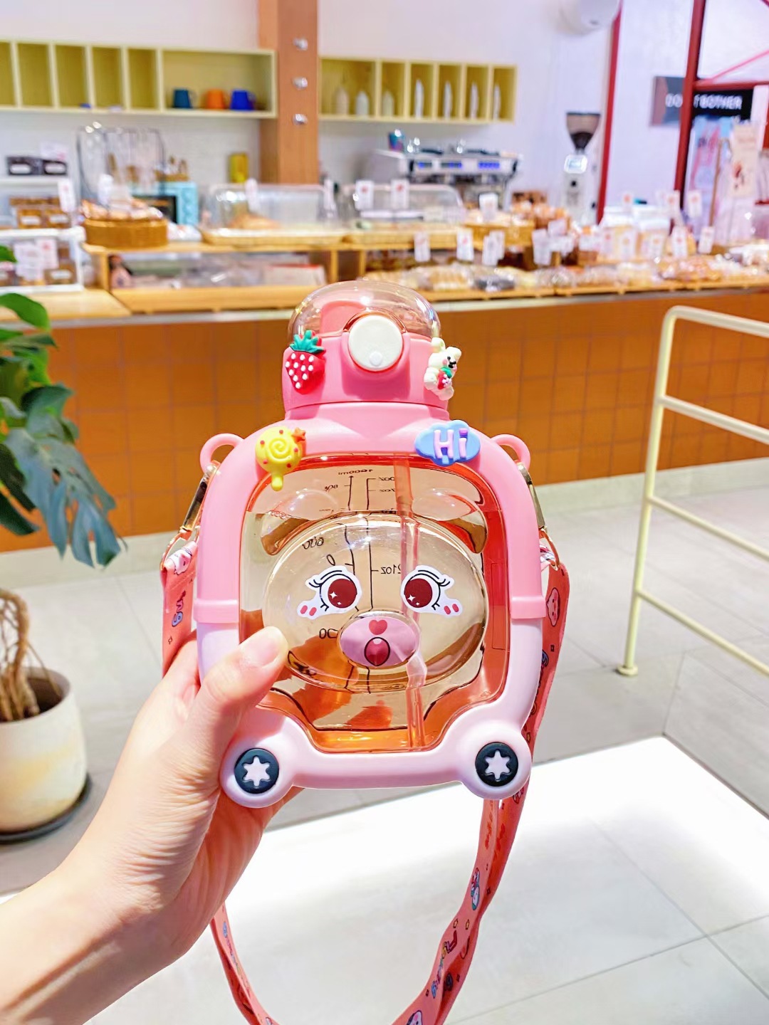 子供用大容量プラスチックカップ漫画熊ストローカップ携帯型ストラップ