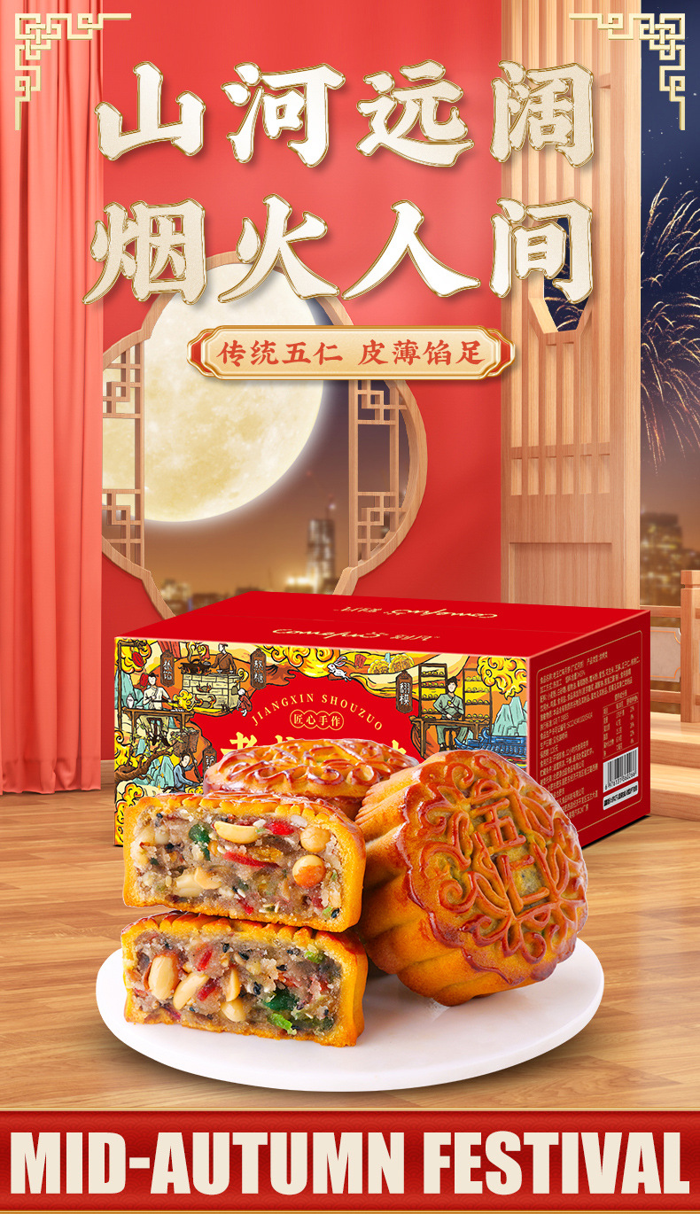 昔ながらの五穀月餅、広東風マルチフレーバー伝統卵黄月餅、栗月餅、黒ごま五穀月餅、中秋節ギフトボックス